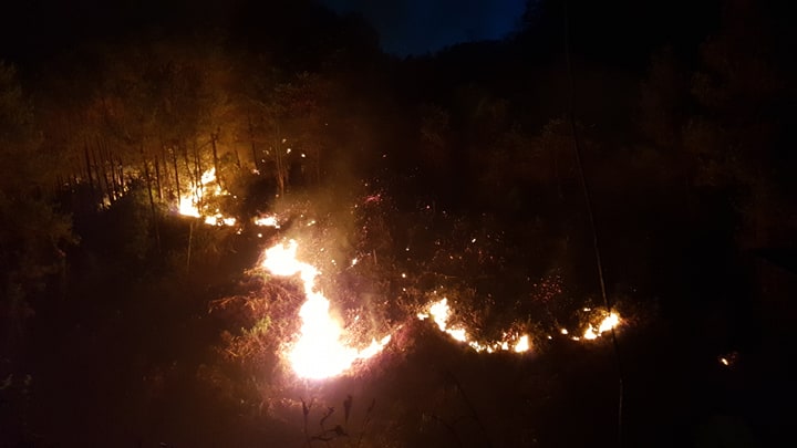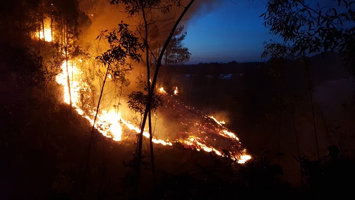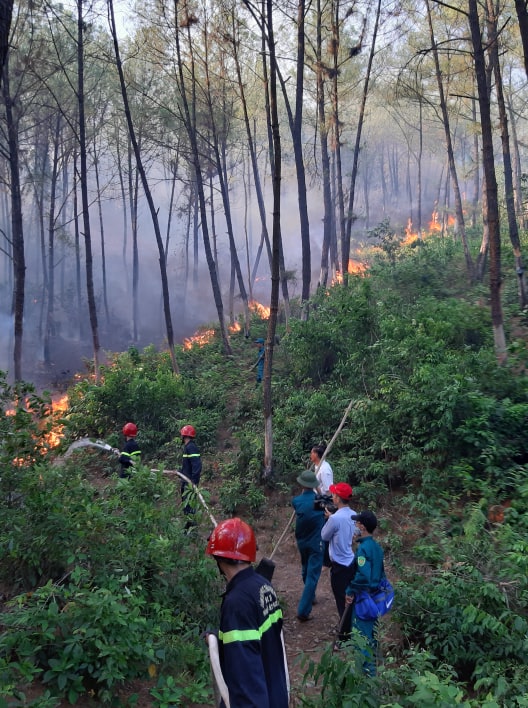Vụ cháy xảy ra trong thời tiết nắng nóng kèm theo gió tây nam thổi mạnh nên ngọn lửa nhanh chóng cháy lan, ra vùng rừng thông.