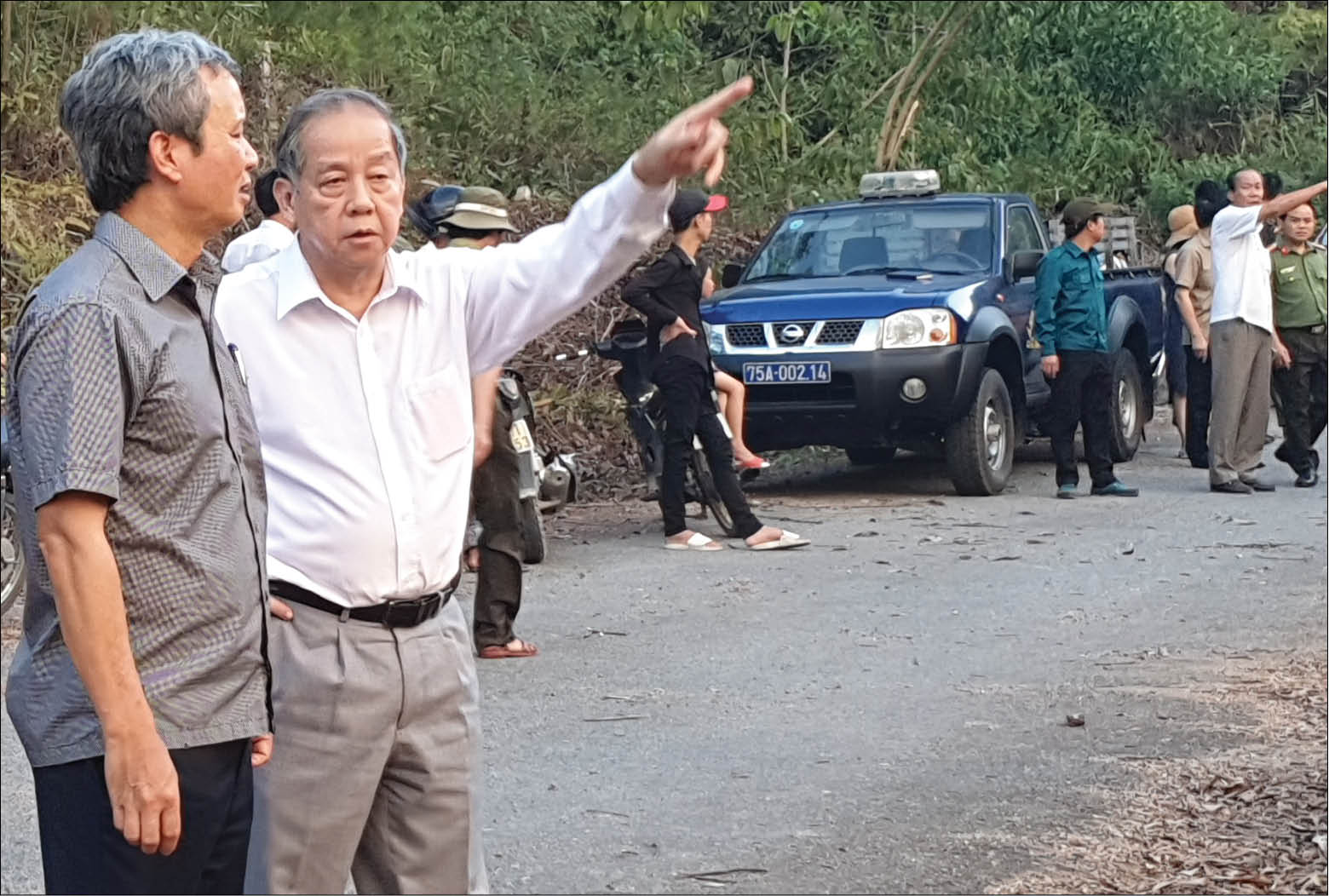 Bí thư Tỉnh ủy Lê Trường Lưu và Chủ tịch UBND tỉnh Phan Ngọc Thọ theo dõi tình hình cháy rừng thông ở Hương Hồ (Hương Trà) chiều tối 28/6