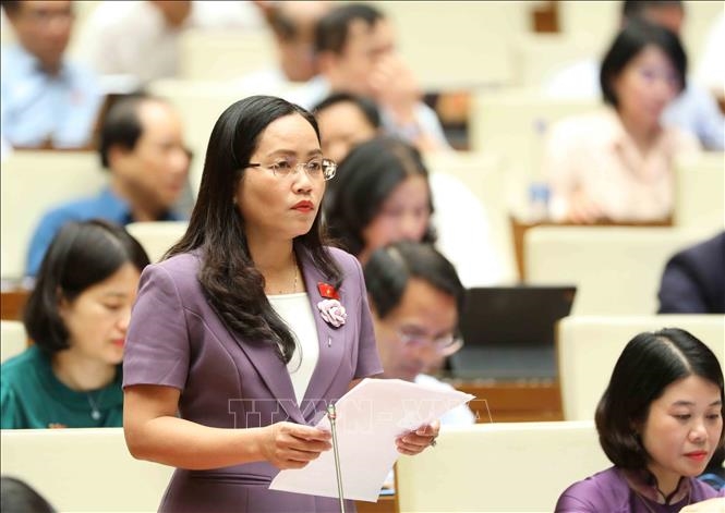 | Đại biểu Quốc hội tỉnh Bắc Kạn Hồ Thị Kim Ngân phát biểu tại Quốc hội. Ảnh: An Đăng/TTXVN |
