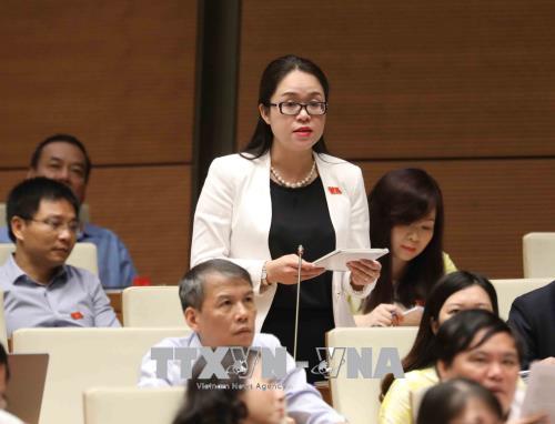 Đại biểu Quốc hội thành phố Hà Nội Dương Minh Ánh chất vấn Bộ trưởng Bộ Tài nguyên và Môi trường Trần Hồng Hà. Ảnh: Phương Hoa/TTXVN
