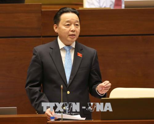 Bộ trưởng Bộ Tài nguyên và Môi trường Trần Hồng Hà trả lời chất vấn của đại biểu Quốc hội. Ảnh: Doãn Tấn/TTXVN