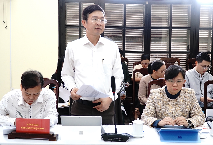 | Bí thư Đảng ủy phường Thuận Hóa Nguyễn Đình Bách phát biểu tại buổi kiểm tra |