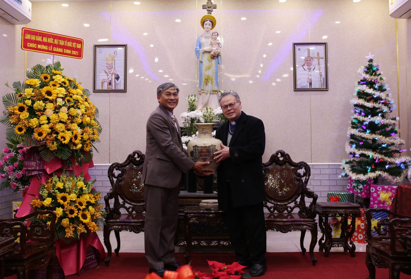 Thừa ủy quyền của Chủ tịch nước Nguyễn Xuân Phúc, ông Nguyễn Thanh Tùng, Phó Cục trưởng Cục Quản trị T.26- Văn phòng Trung ương Đảng đã trao lẵng hoa và quà của lãnh đạo Đảng và Nhà nước, Trung ương Mặt trận Tổ quốc Việt Nam đến Đức Tổng Giám mục Giáo phận Huế và các vị chức sắc Công giáo cùng bà con giáo dân, chúc một mùa Giáng sinh an lành, hạnh phúc.