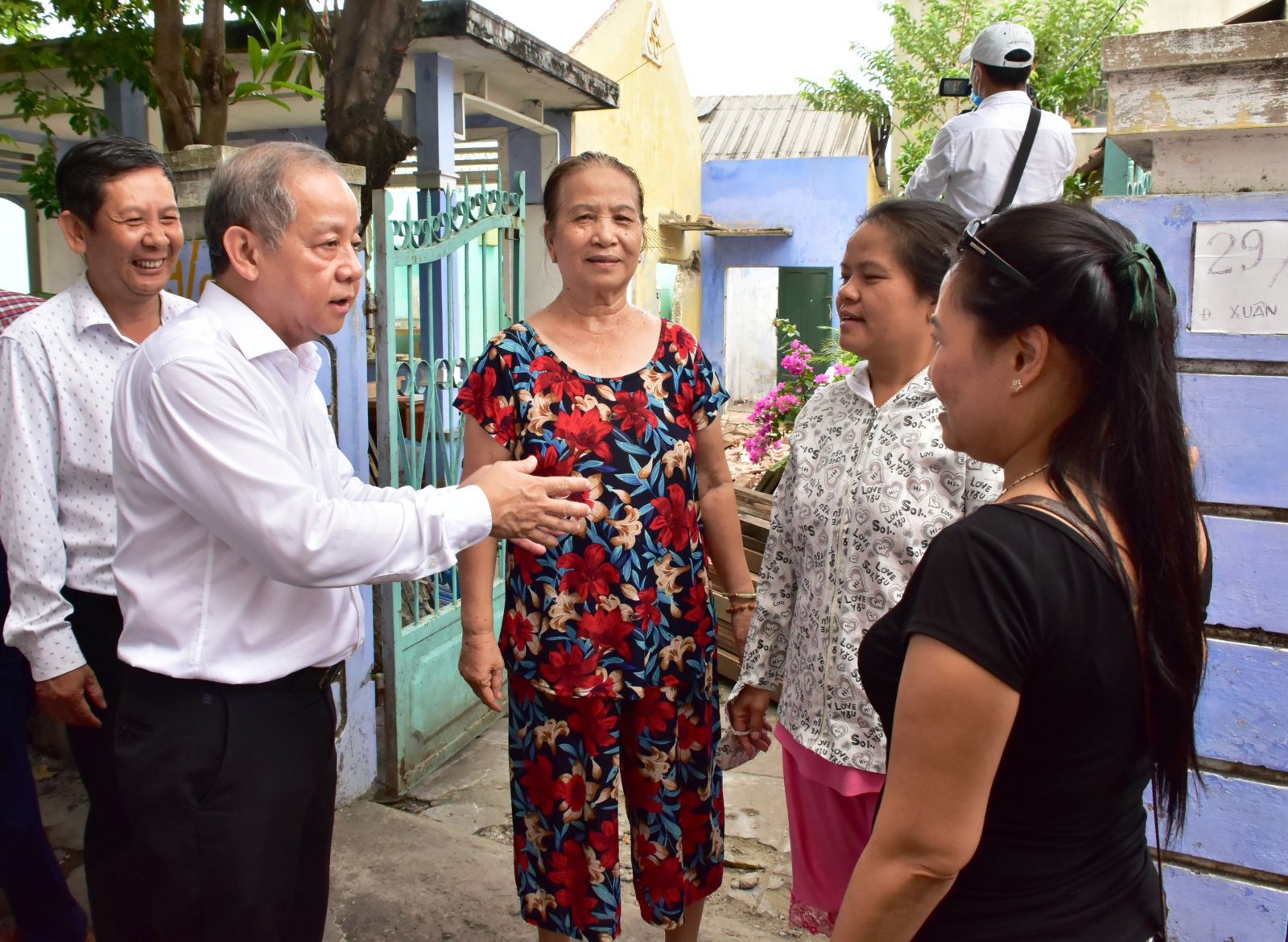 Chủ tịch UBND tỉnh Phan Ngọc Thọ hỏi thăm người dân sống ở khu vực Eo Bầu trước khi về nơi ở mới