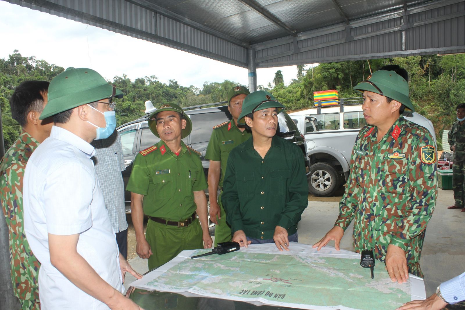 Đoàn công tác đã nghe các lực lượng báo cáo về một số kết quả tìm kiếm thời gian qua và phương án tìm kiếm tại giai đoạn 7. Đồng thời, tiến hành khảo sát một số địa điểm chưa tìm kiếm nằm trên dòng Rào Trăng cách hiện trường sạt lở hơn 1km.