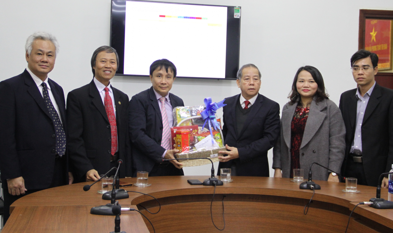 Chủ tịch UBND tỉnh Phan Ngọc Thọ (thứ 3 từ phải) tặng quà tết đến Ban Giám đốc Bệnh viện Trung ương Huế