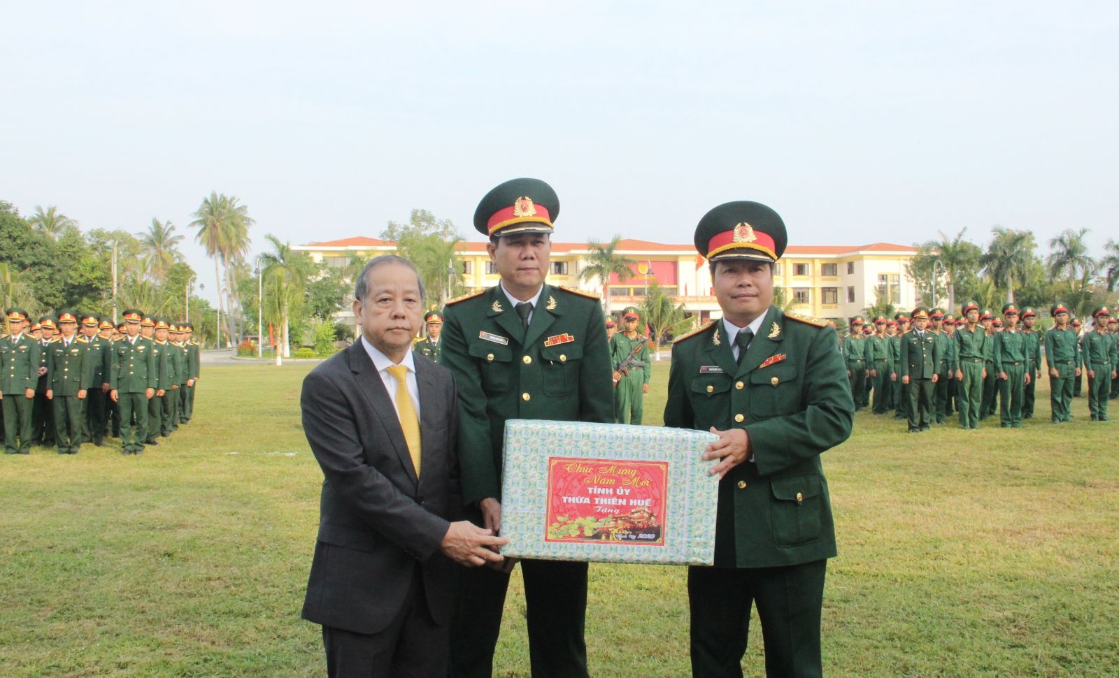 Chủ tịch UBND tỉnh Phan Ngọc Thọ tặng quà tết đến lực lượng vũ trang tỉnh buổi chào cờ đầu năm Canh Tý