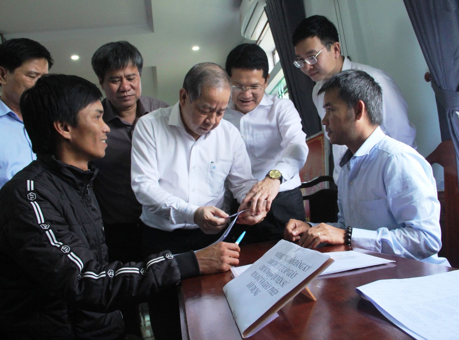 Chủ tịch UBND tỉnh Phan Ngọc Thọ kiểm tra việc bốc thăm phân lô đất tái định cư cho người dân Thượng Thành