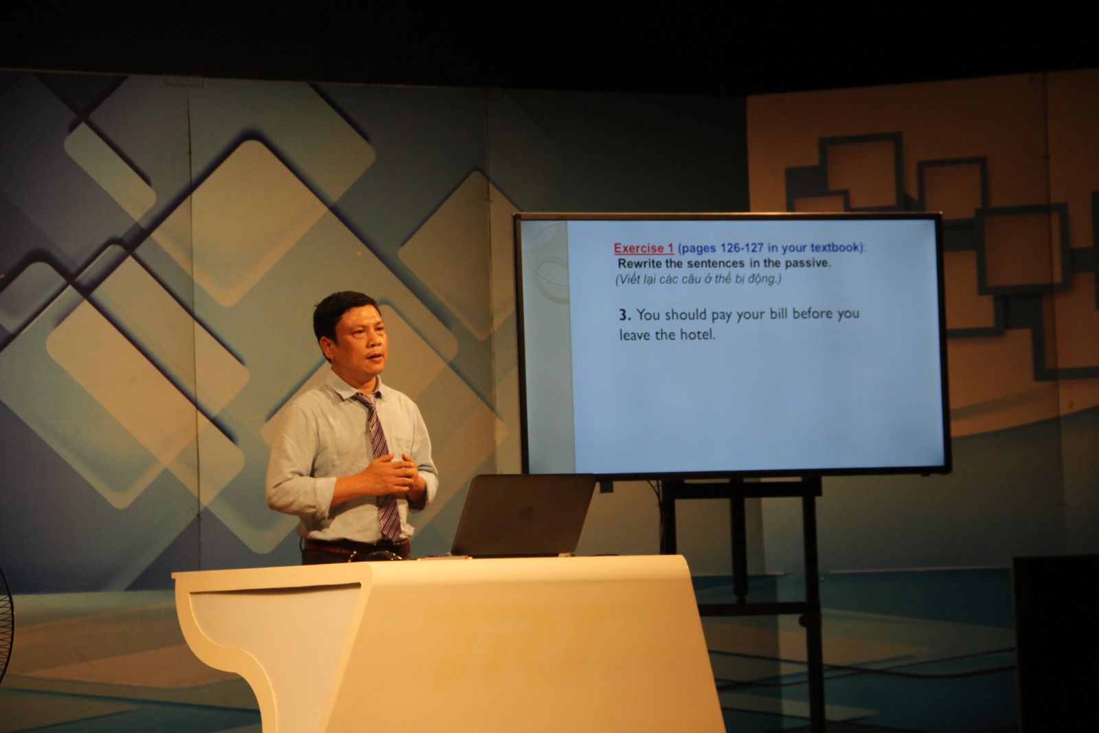 Một buổi ghi hình phục vụ dạy học trực tuyến năm học 2020- 2021