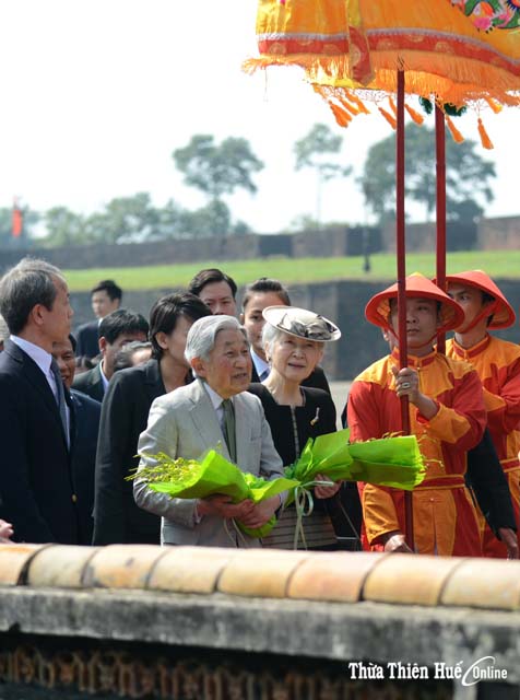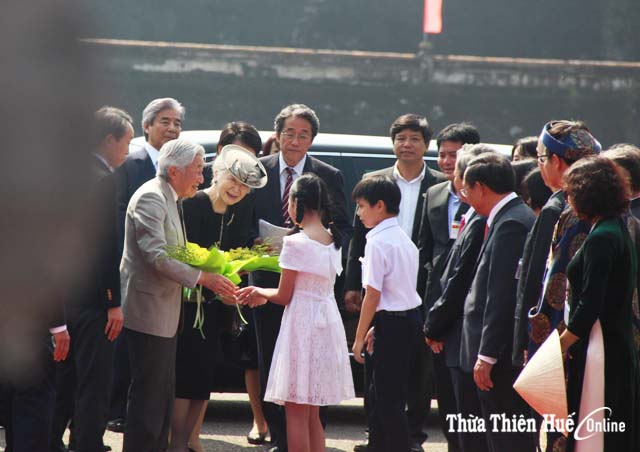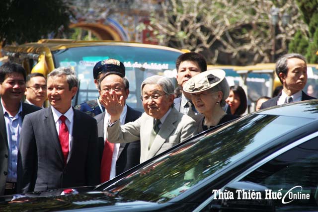 Phóng viên Thừa Thiên Huế Online đã có mặt và gửi đến độc giả những hình ảnh Nhật Hoàng và Hoàng hậu ở hoàng cung Huế sáng nay: