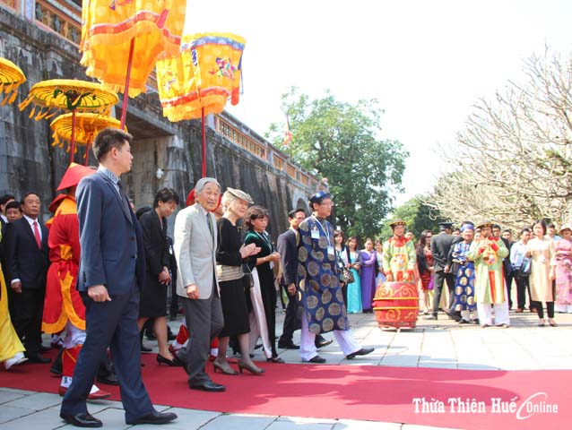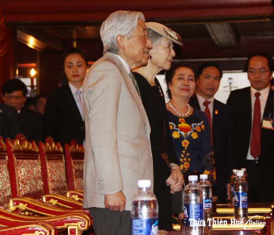 HNN.VN - Ngay trong sáng 4/3, Nhật Hoàng và Hoàng hậu cùng đoàn quan chức cấp cao Nhật Bản đã đến thăm Đại Nội, thưởng thức chương trình nhã nhạc cung đình Huế tại nhà hát Duyệt Thị Đường.