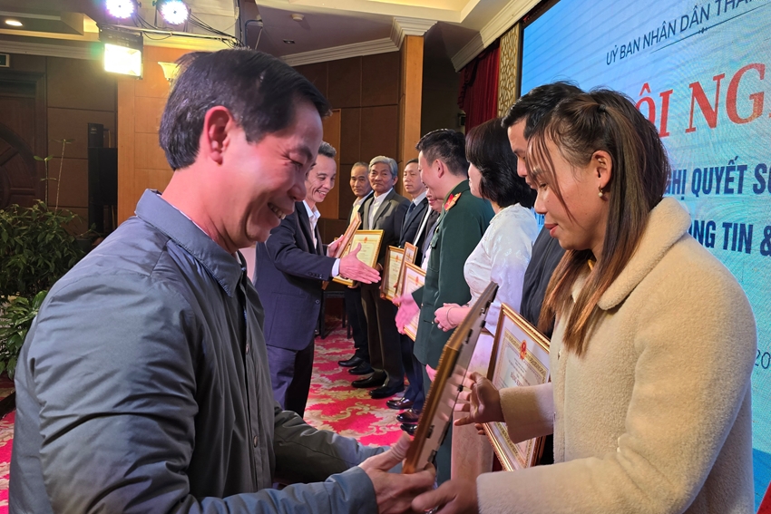 | Trao bằng khen của Chủ tịch UBND tỉnh (nay là TP. Huế) cho 10 tập thể đã có thành tích xuất sắc trong triển khai thực hiện Nghị quyết 12 về chuyển đổi số |