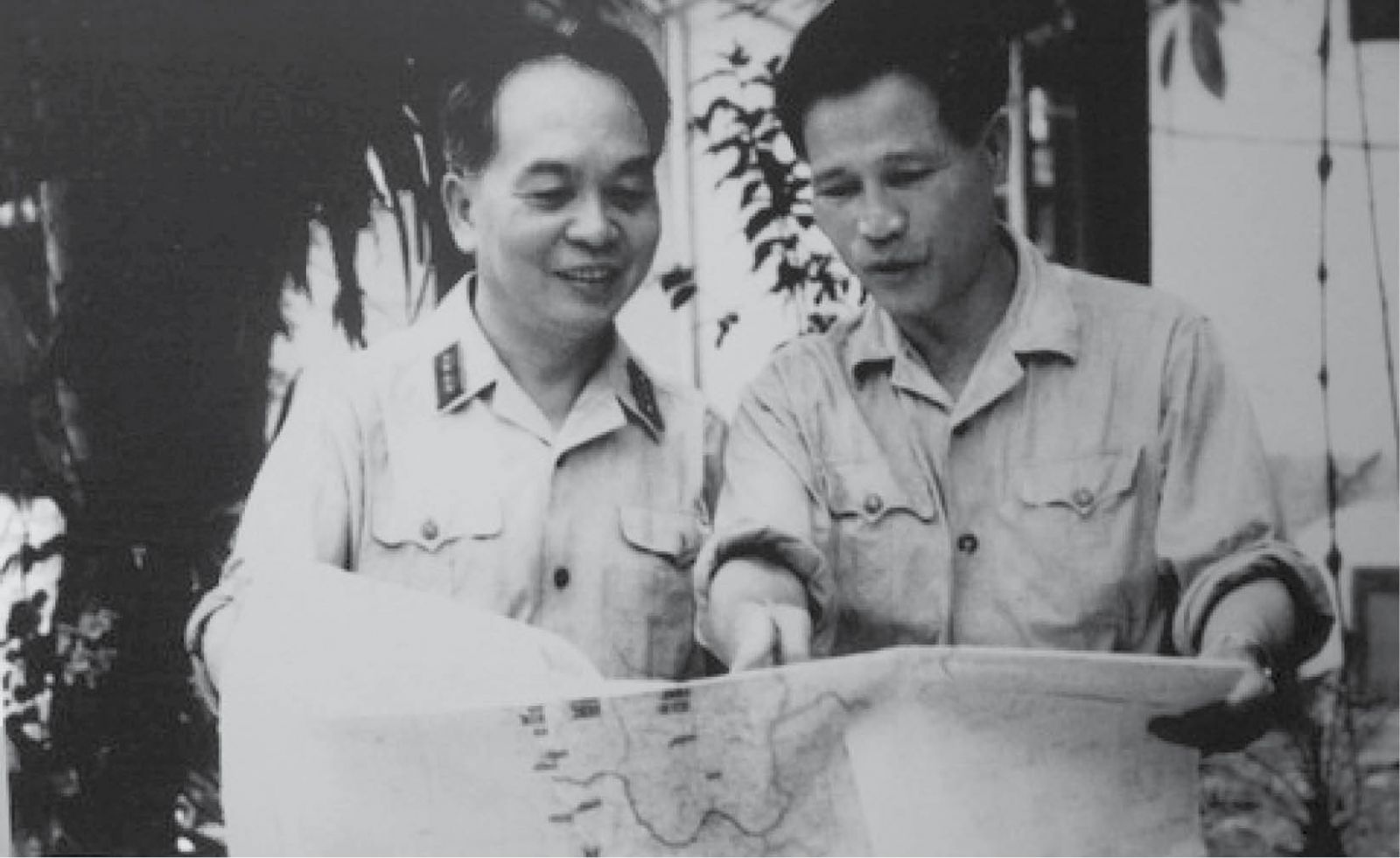 Đại tướng Nguyễn Chí Thanh cùng Đại tướng Võ Nguyên Giáp trao đổi tình hình chiến sự ở miền Nam, ngày 5/7/1967. Ảnh: Tư liệu