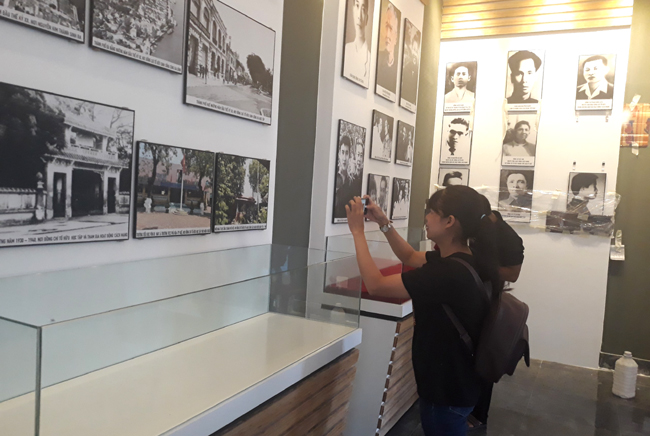 Các bạn trẻ tại phòng trưng bày những hình ảnh liên quan đến cuộc đời hoạt động của nhà thơ Tố Hữu