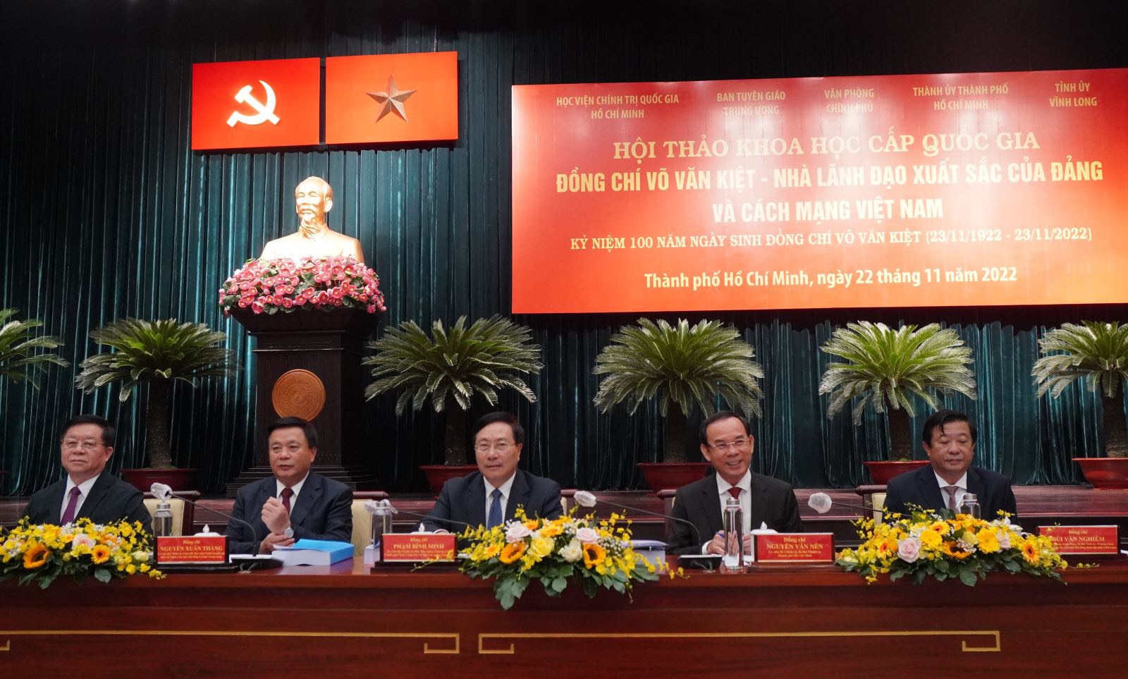 Tham dự hội thảo có các đại biểu: nguyên Chủ tịch nước Nguyễn Minh Triết; Phó Thủ tướng Thường trực Chính phủ Phạm Bình Minh; Chủ tịch Hội đồng Lý luận Trung ương - Giám đốc Học viện Chính trị Quốc gia Hồ Chí Minh Nguyễn Xuân Thắng; Bí thư Thành ủy TP Hồ Chí Minh Nguyễn Văn Nên; nguyên Phó Thủ tướng Thường trực Chính phủ Trương Hòa Bình; nguyên Bí thư Thành ủy TP Hồ Chí Minh Lê Thanh Hải; nguyên Bí thư Thành ủy TP Hồ Chí Minh Nguyễn Thiện Nhân; Trưởng Ban Tuyên giáo Trung ương Nguyễn Trọng Nghĩa; Bí thư Tỉnh ủy Vĩnh Long Bùi Văn Nghiêm; nguyên Phó Chủ tịch nước Trương Mỹ Hoa; nguyên Phó Chủ tịch nước Đặng Thị Ngọc Thịnh; nguyên Chủ tịch Ủy ban Trung ương MTTQ Việt Nam Huỳnh Đảm; Bộ trưởng Bộ KH&ĐT Nguyễn Chí Dũng…