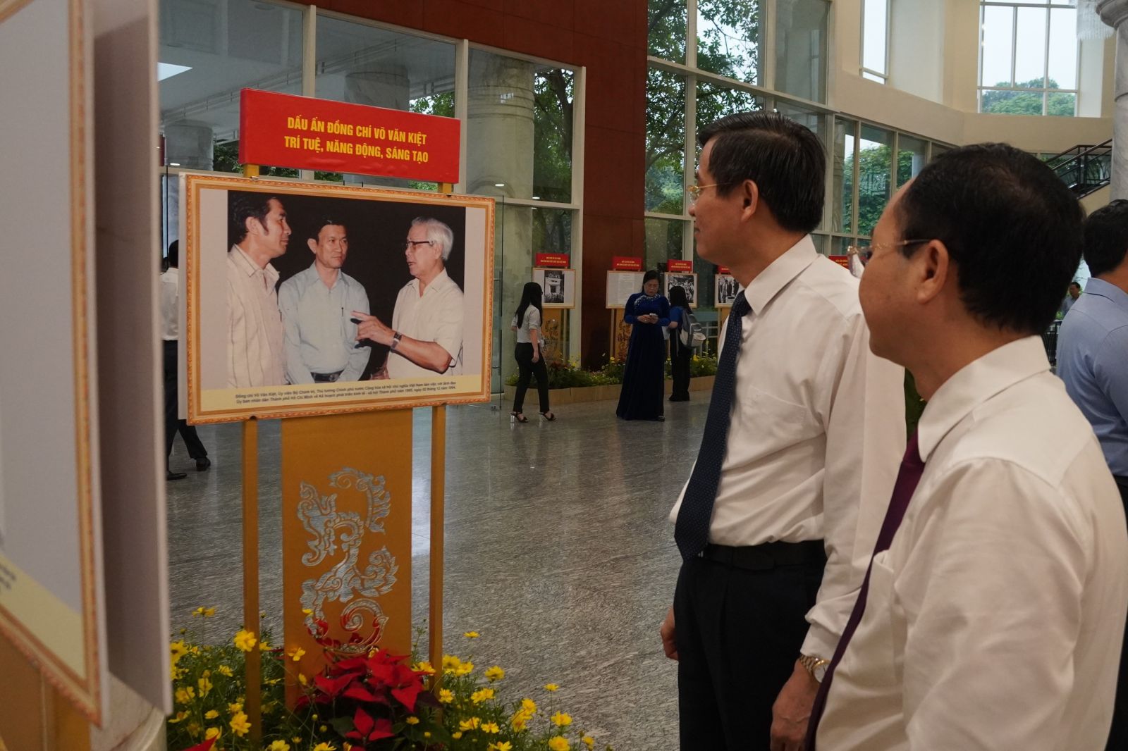 Các đại biểu tham quan khu vực trưng bày triển lãm cuộc đời và sự nghiệp của cố Thủ tướng Võ Văn Kiệt