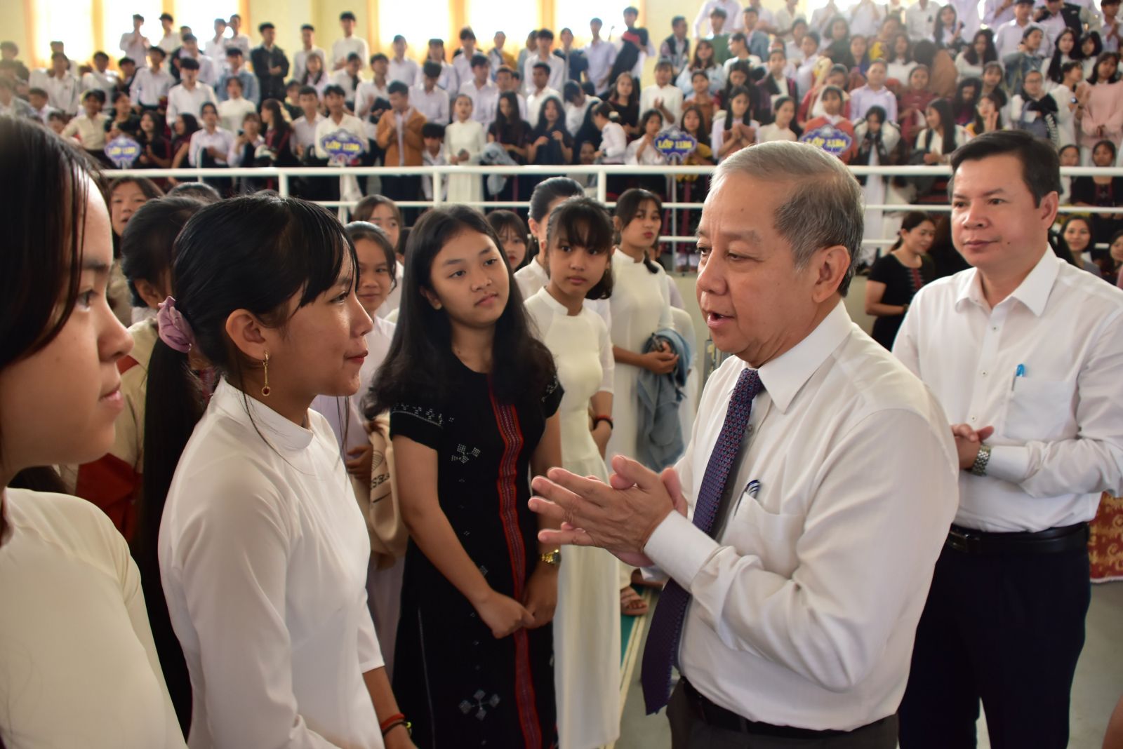 Chủ tịch UBND tỉnh Phan Ngọc Thọ trò chuyện thân mật với các em học sinh