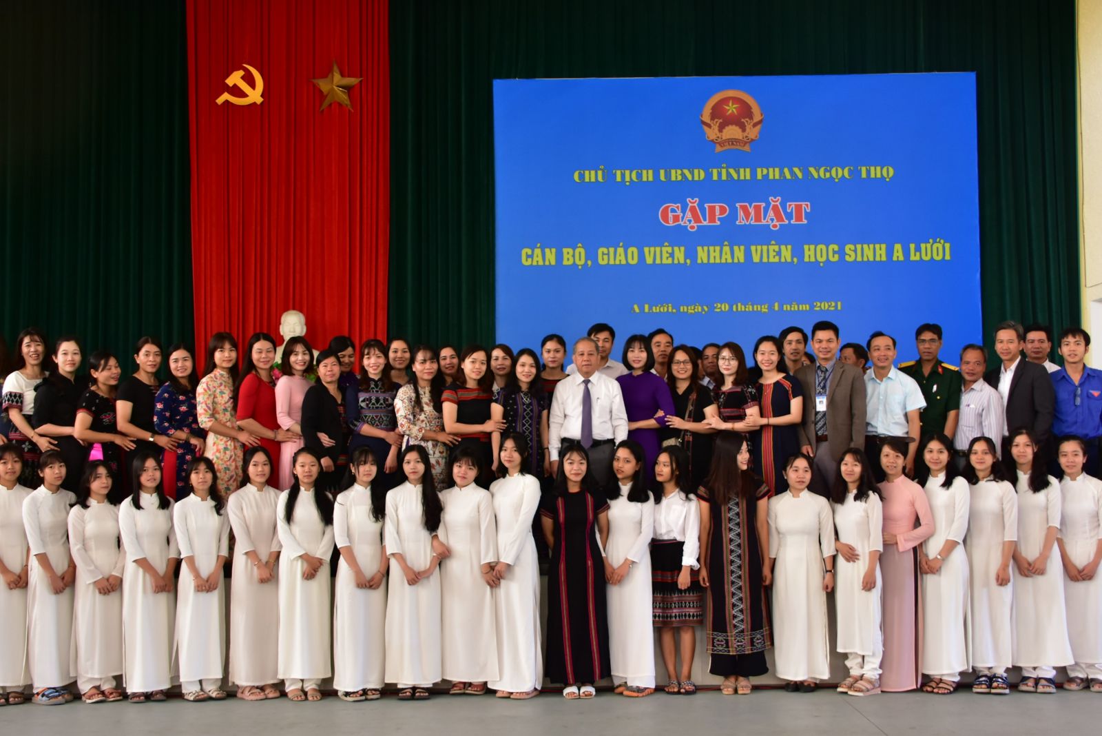Tại buổi gặp mặt, Chủ tịch UBND tỉnh Phan Ngọc Thọ vui mừng khi được nói chuyện với hơn 800 học sinh, giáo viên Trường THPT A Lưới. Chủ tịch UBND tỉnh cho biết, sau Hương Thủy và TP. Huế, A Lưới là địa phương thứ 3 ông lựa chọn nhằm trao đổi về các lĩnh vực kinh tế - xã hội, đặc biệt là phát triển ngành giáo dục tỉnh nhà.