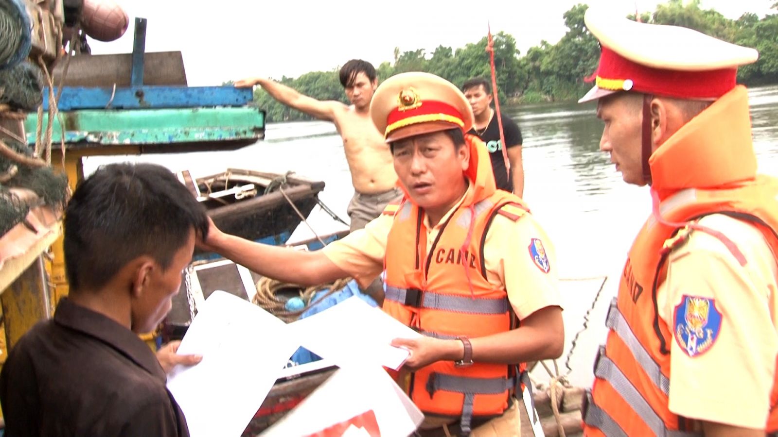 CSGT - Công an TP. Huế tuyên truyền các chủ tàu, thuyền trên sông Hương sẵn sàng phòng, chống bão số 5