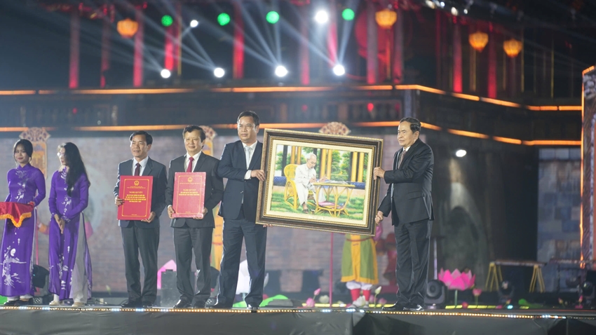 Chủ tịch Quốc hội Trần Thanh Mẫn đã trao Nghị quyết số 175/2024/QH15 của Quốc hội, Nghị quyết số 1314/NQ-UBTVQH15 của Ủy ban Thường vụ Quốc hội cho lãnh đạo tỉnh Thừa Thiên Huế và trao tặng Đảng bộ, chính quyền và Nhân dân Huế bức tranh Chủ tịch Hồ Chí Minh.
