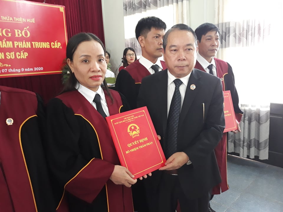 HNN.VN - Chiều 7/9, căn cứ Quyết định số 1478 và Quyết định số 1479 ngày 21/8/2020 của Chủ tịch nước về việc bổ nhiệm, bổ nhiệm lại chức danh thẩm phán trung cấp, thẩm phán sơ cấp, Tòa án Nhân dân (TAND) tỉnh đã tổ chức Lễ công bố và trao Quyết định bổ nhiệm thẩm phán trung cấp, thẩm phán sơ cấp cho 8 đồng chí thuộc các đơn vị trong TAND 2 cấp tỉnh Thừa Thiên Huế.