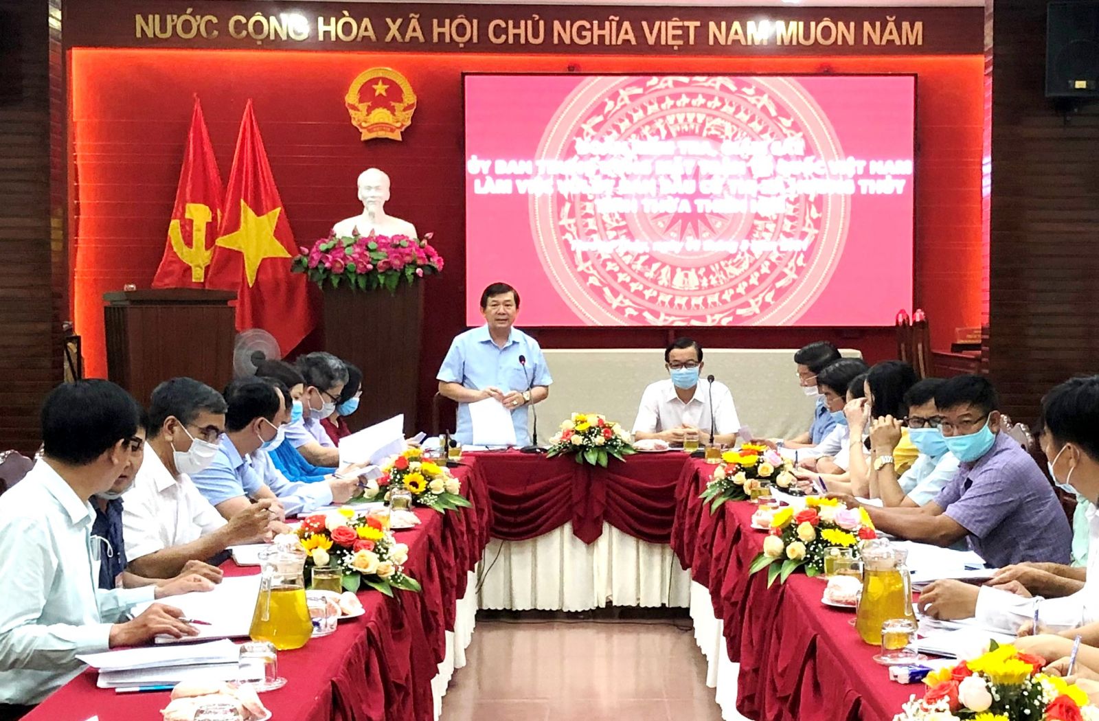 Phó Chủ tịch UBTUMTTQ Việt Nam Nguyễn Hữu Dũng tại buổi làm việc với TX. Hương Thủy