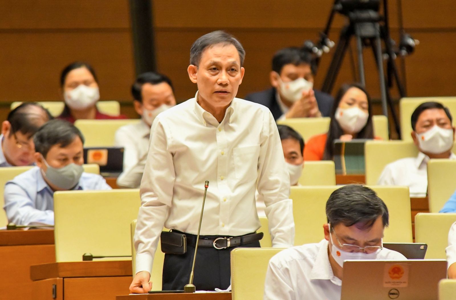 Đại biểu Lê Hoài Trung tham gia đóng góp ý kiến về dự kiến Chương trình giám sát của Quốc hội năm 2022. Ảnh: Vương Linh