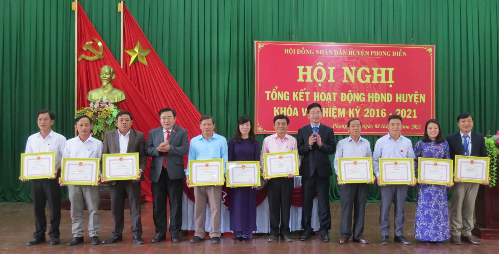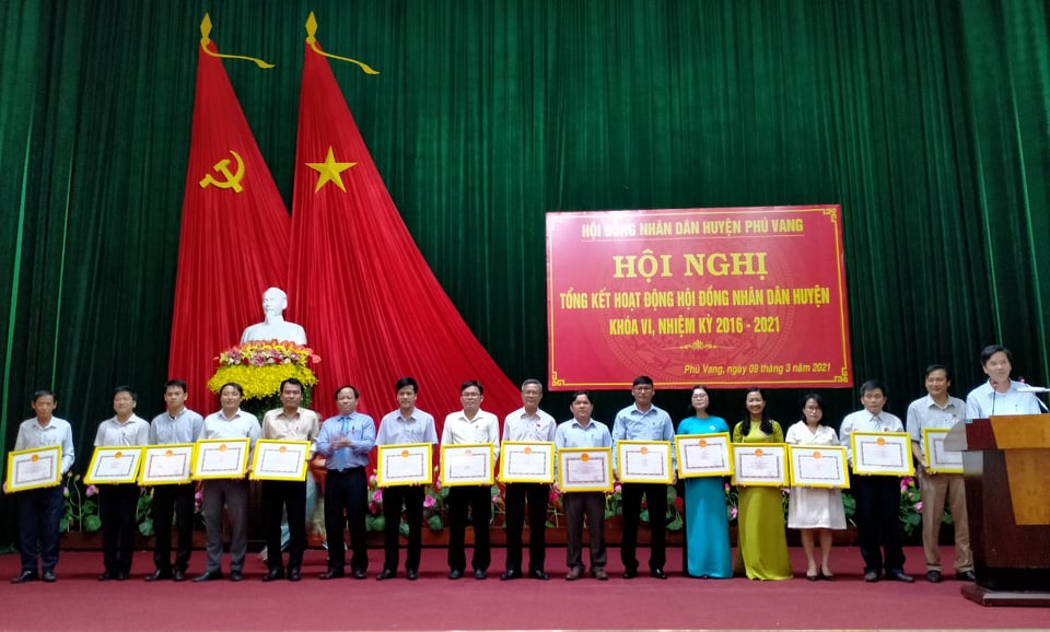 Dịp này, huyện Phong Điền đã tặng giấy khen cho 10 tập thể và 15 cá nhân có thành tích xuất sắc trong hoạt động HĐND huyện Phong Điền khóa VI, nhiệm kỳ 2016 – 2021.