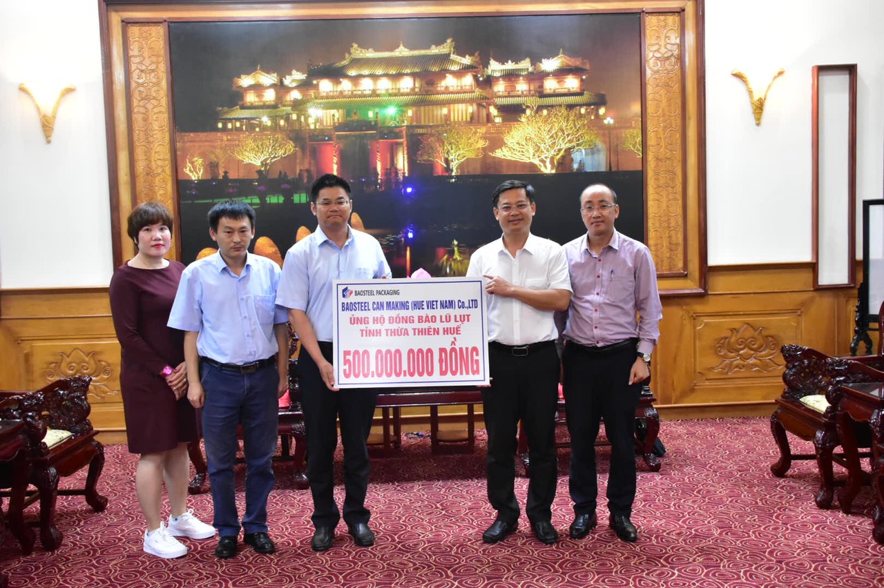 Thay mặt lãnh đạo và Nhân dân tỉnh Thừa Thiên Huế, Phó Chủ tịch UBND tỉnh Nguyễn Thanh Bình đã gửi lời cám ơn đến tập thể, cán bộ nhân viên Công ty TNHH Baosteel Can Making dành sự quan tâm, giúp đỡ đồng bào tỉnh Thừa Thiên Huế trong lúc khó khăn; đồng thời hứa sẽ sớm chuyển số tiền hỗ trợ này đến người dân bị ảnh hưởng nhằm khắc phục hậu quả thiên tai, sớm ổn định đời sống.