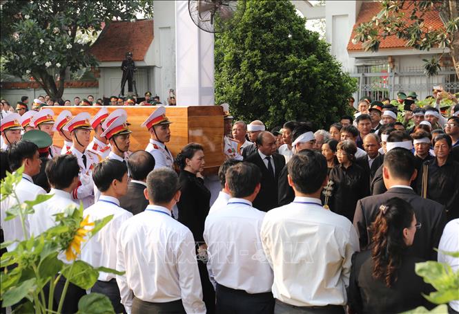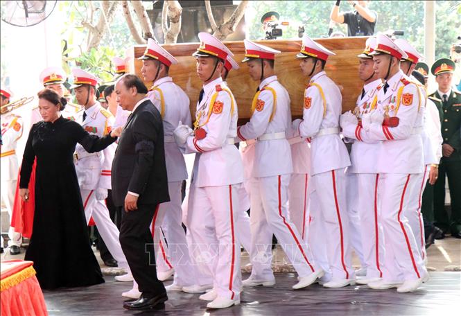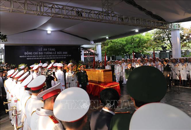 Linh cữu nguyên Chủ tịch nước, Đại tướng Lê Đức Anh được đưa vào vị trí an táng. Ảnh: TTXVN