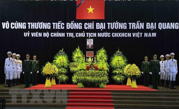 Xúc động ghi vào sổ tang, Tổng Bí thư Nguyễn Phú Trọng viết: “Vô cùng thương tiếc đồng chí Trần Đại Quang, Ủy viên Bộ Chính trị, Chủ tịch nước Cộng hòa xã hội chủ nghĩa Việt Nam, nhà lãnh đạo đã có nhiều cống hiến cho sự nghiệp cách mạng vẻ vang của Đảng, Nhà nước và nhân dân ta, nhất là với lực lượng Công an nhân dân, xây dựng và bảo vệ Tổ quốc Việt Nam xã hội chủ nghĩa.