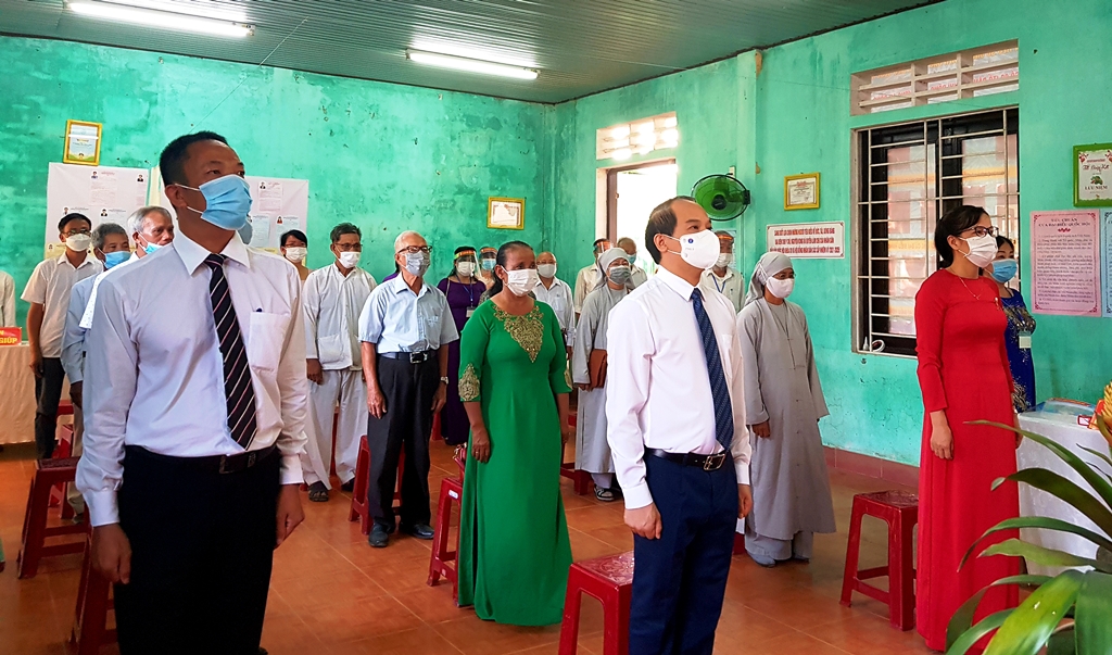 Chào cờ, khai mạc trước khi bắt đầu ngày bầu cử. Ảnh: Nhật Minh