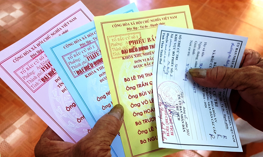 Thẻ cử tri và phiếu bầu đại biểu các cấp. Ảnh: Nhật Minh