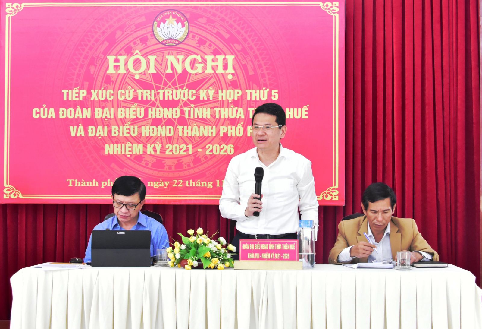 Trong chuỗi hoạt động tiếp xúc cử tri trước kỳ họp thứ 11 HĐND TP. Huế, nhiệm kỳ 2021 - 2026, sáng 25/11, các tổ đại biểu HĐND thành phố đã đồng loạt tổ chức nhiều hội nghị tại các xã, phường. Tại đây, cử tri nêu lên hàng chục ý kiến xoay quanh lĩnh vực hạ tầng, dân sinh, giáo dục, môi trường, đất đai và an sinh xã hội. Các ý kiến đều được đại biểu HĐND tiếp thu, giải trình và cam kết chuyển đến kỳ họp để xem xét, giải quyết.
