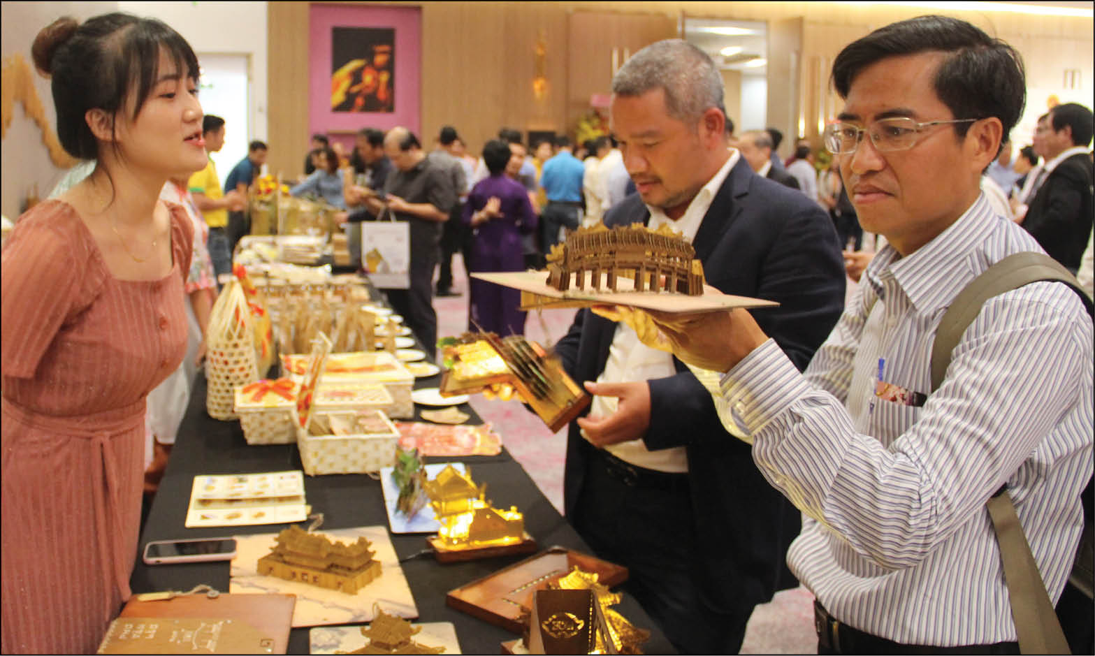 Một số sản phẩm thủ công mỹ nghệ lưu niệm được trưng bày tại buổi gặp mặt