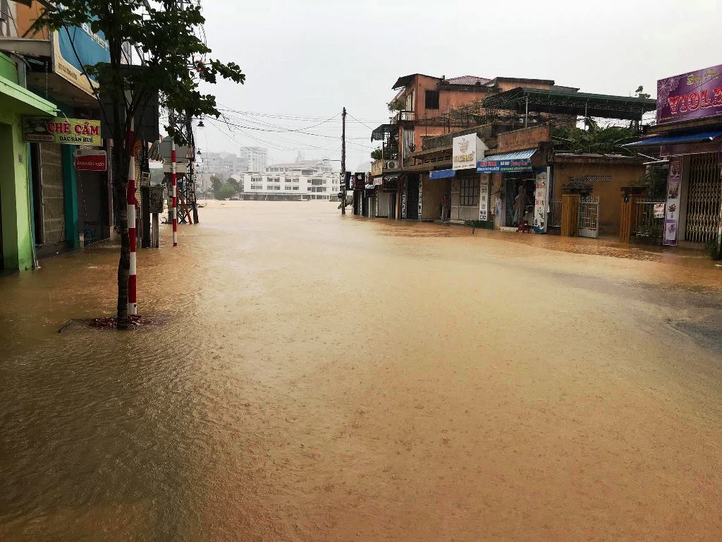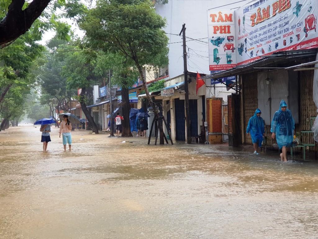 Gần như các tuyến đường trung tâm đã bị ngập nước từ chiều tối qua