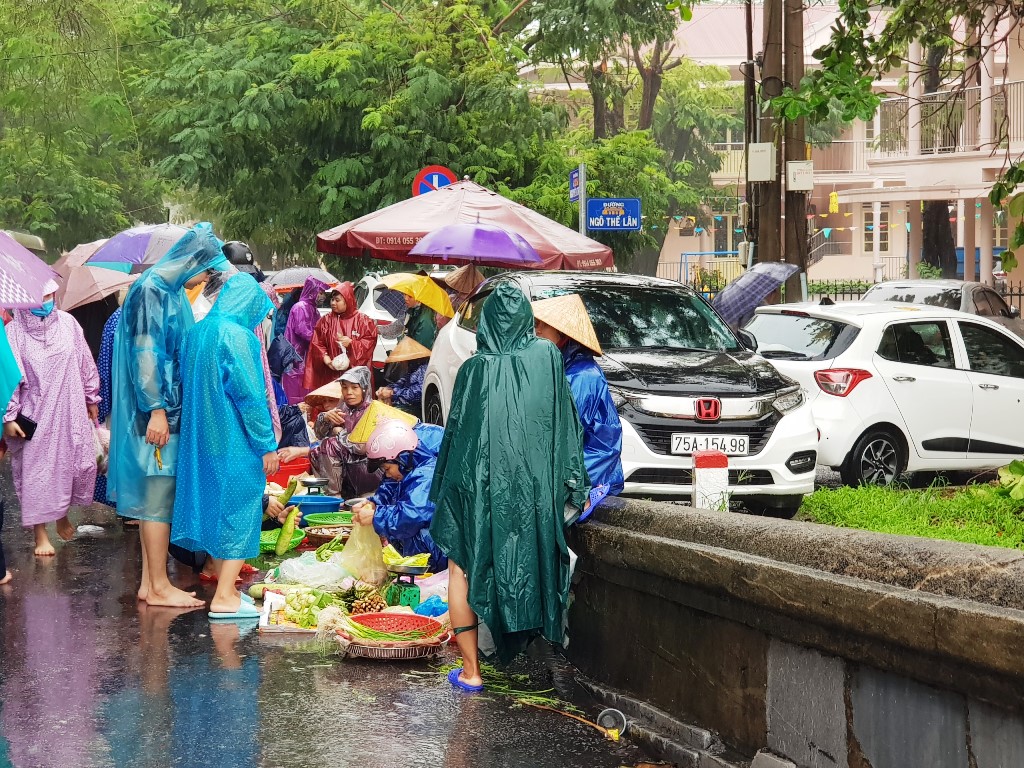 Mặc dù mưa lũ, nhưng tại một số điểm cao ráo vẫn họp chợ