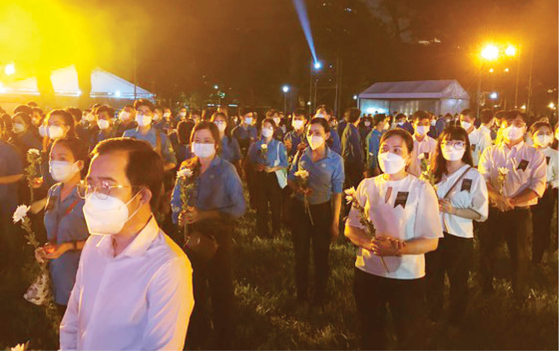 Người dân tham gia Lễ tưởng niệm đồng bào tử vong và cán bộ, chiến sĩ hy sinh trong đại dịch COVID-19. Ảnh: baochinhphu.vn