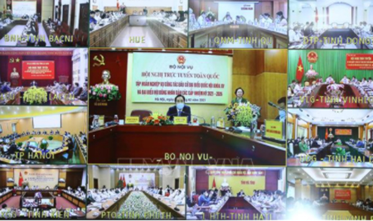 Hội nghị trực tuyến về tập huấn công tác bầu cử do Bộ Nội vụ tổ chức sáng 25/2 (Ảnh: TTXVN)