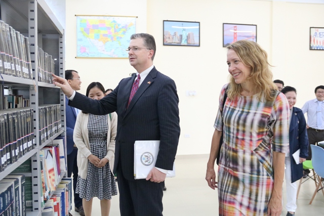 Đại sứ Daniel J. Kritenbrink tham quan thư viện Trường ĐH Ngoại ngữ