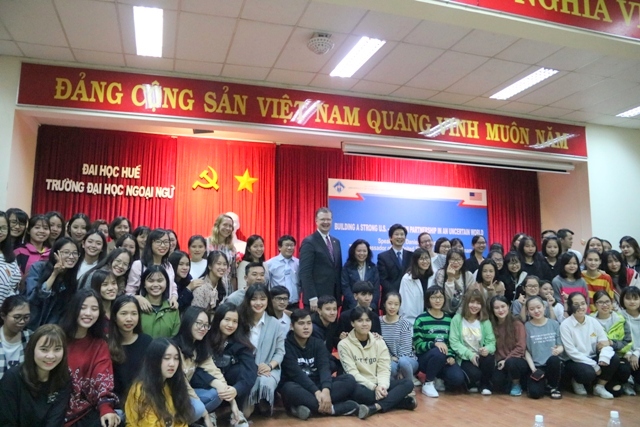 HNN.VN - Chiều 11/12, Đại sứ Hoa Kỳ tại Việt Nam Daniel J. Kritenbrink cùng phái đoàn thuộc Đại sứ quán Hoa Kỳ đã có chuyến thăm và làm việc tại Trường đại học (ĐH) Ngoại ngữ, ĐH Huế.