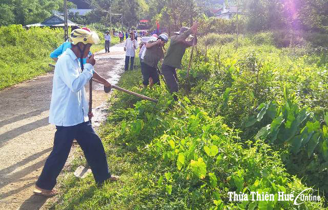 Đến thôn Lê Lộc 2, xã Hồng Bắc (A Lưới) vào ngày trung tuần tháng 10, chúng tôi hòa mình vào không khí ra quân vệ sinh môi trường của cán bộ, đảng viên và Nhân dân trong thôn. Người làm cỏ, người quét dọn, thu gom rác, dựng hàng rào... chẳng mấy chốc tuyến đường liên thôn đã sạch đẹp. Một thanh niên trong thôn cho biết: “Tuyến đường này do chi hội thanh niên đảm trách việc vận động bà con thực hiện vệ sinh môi trường, dựng hàng rào trước ngõ. Định kỳ mỗi tháng 2 lần, vào giữa tháng và cuối tháng, chúng tôi hỗ trợ thực hiện, còn mỗi ngày thì bà con tự vệ sinh phần trước cửa nhà mình cho sạch đẹp”.
