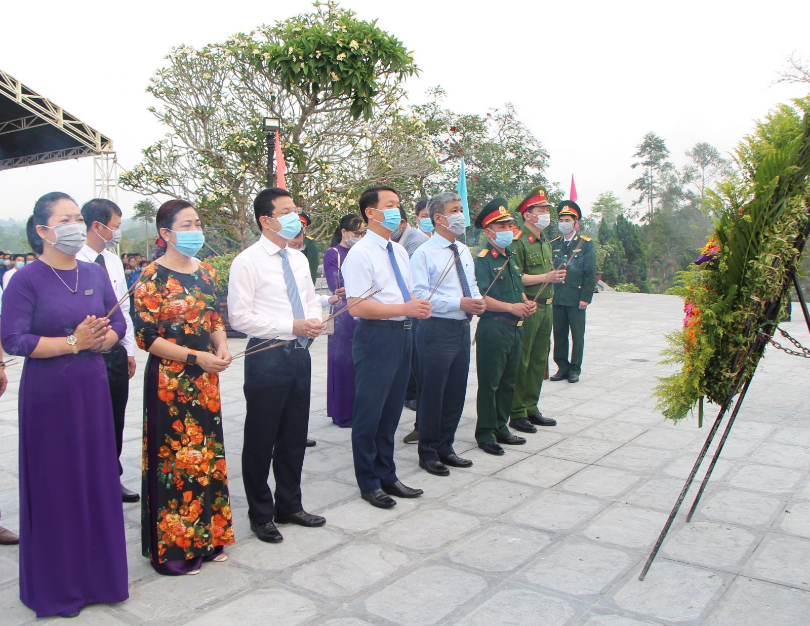 Trước anh linh những vị anh hùng, các đại biểu đã bày tỏ niềm thành kính, biết ơn vô hạn đối với công lao to lớn của các anh hùng liệt sỹ đã tận trung với nước, tận hiếu với dân. Sau phút mặc niệm, đông đảo các đại biểu đã viếng và thắp hương từng phần mộ liệt sỹ. Đây là hoạt động thể hiện sự thành kính, tri ân sâu sắc đến các thế hệ đi trước đã hiến trọn đời mình vì Độc lập, tự do của Tổ quốc, vì Hạnh phúc của nhân dân.