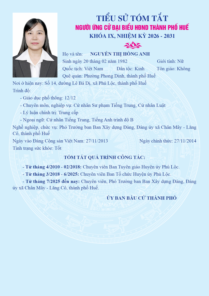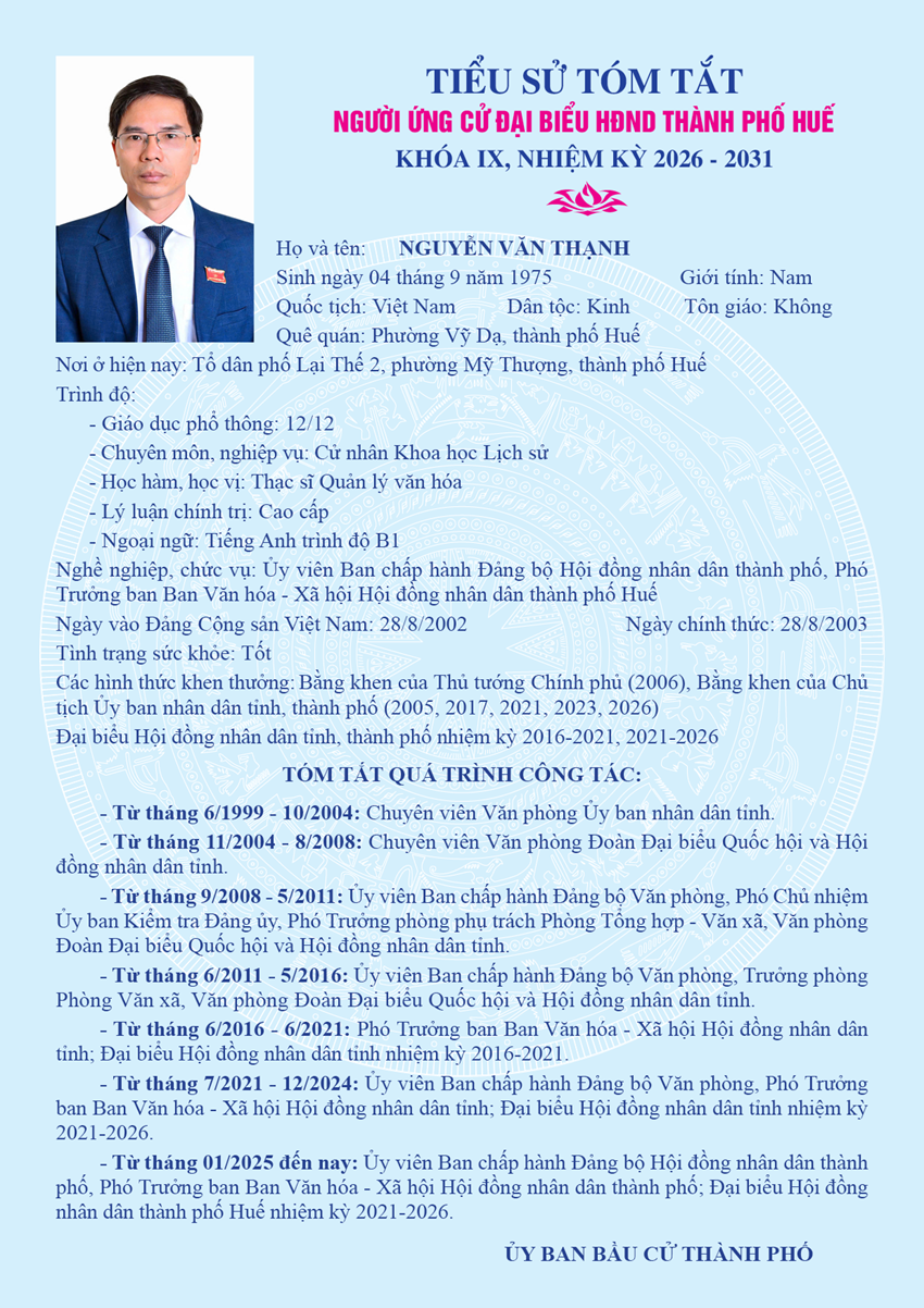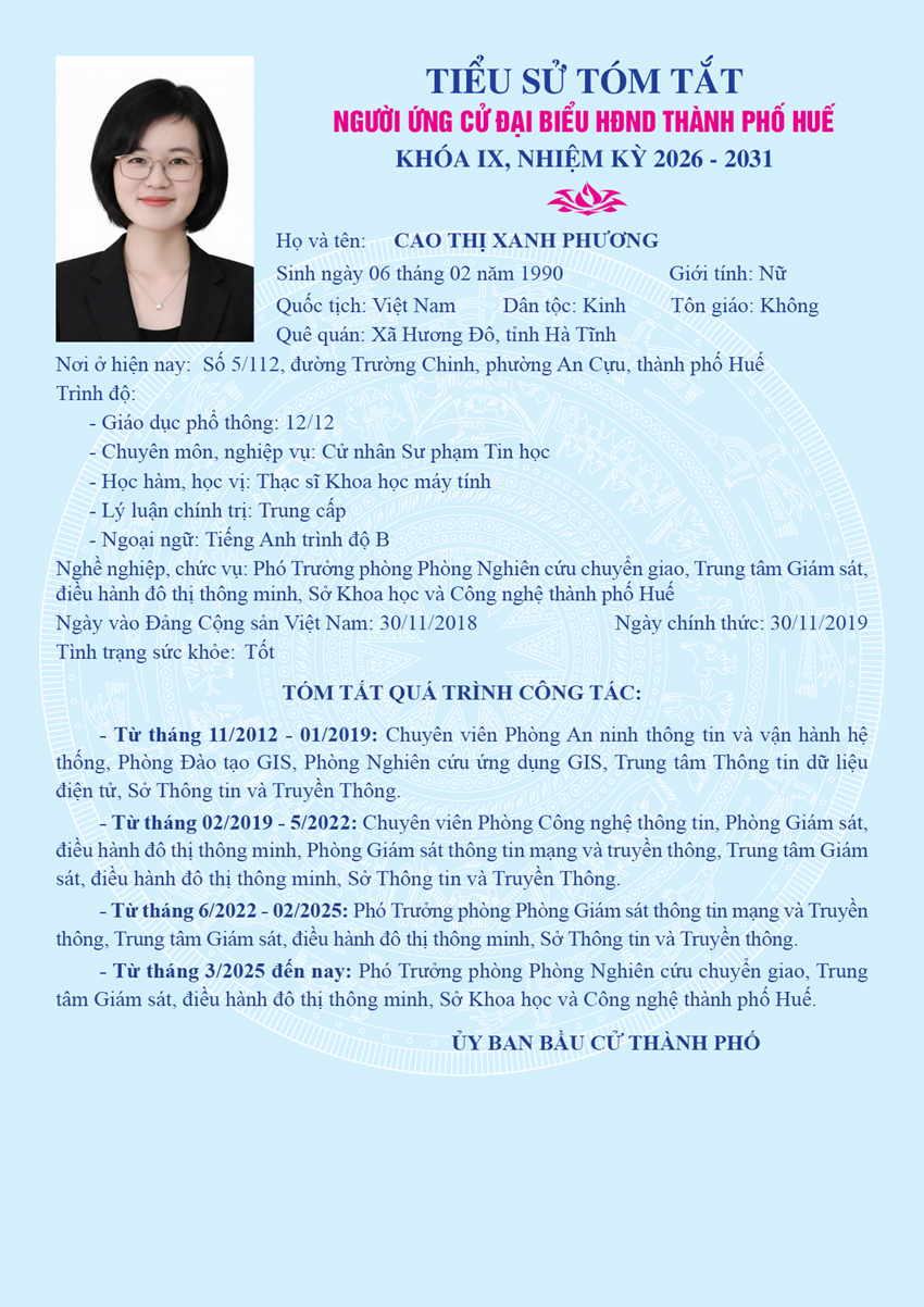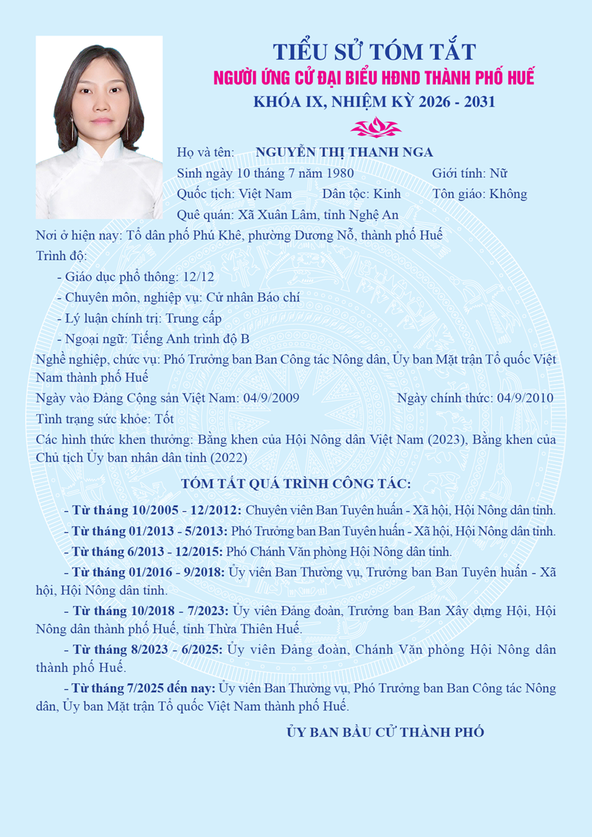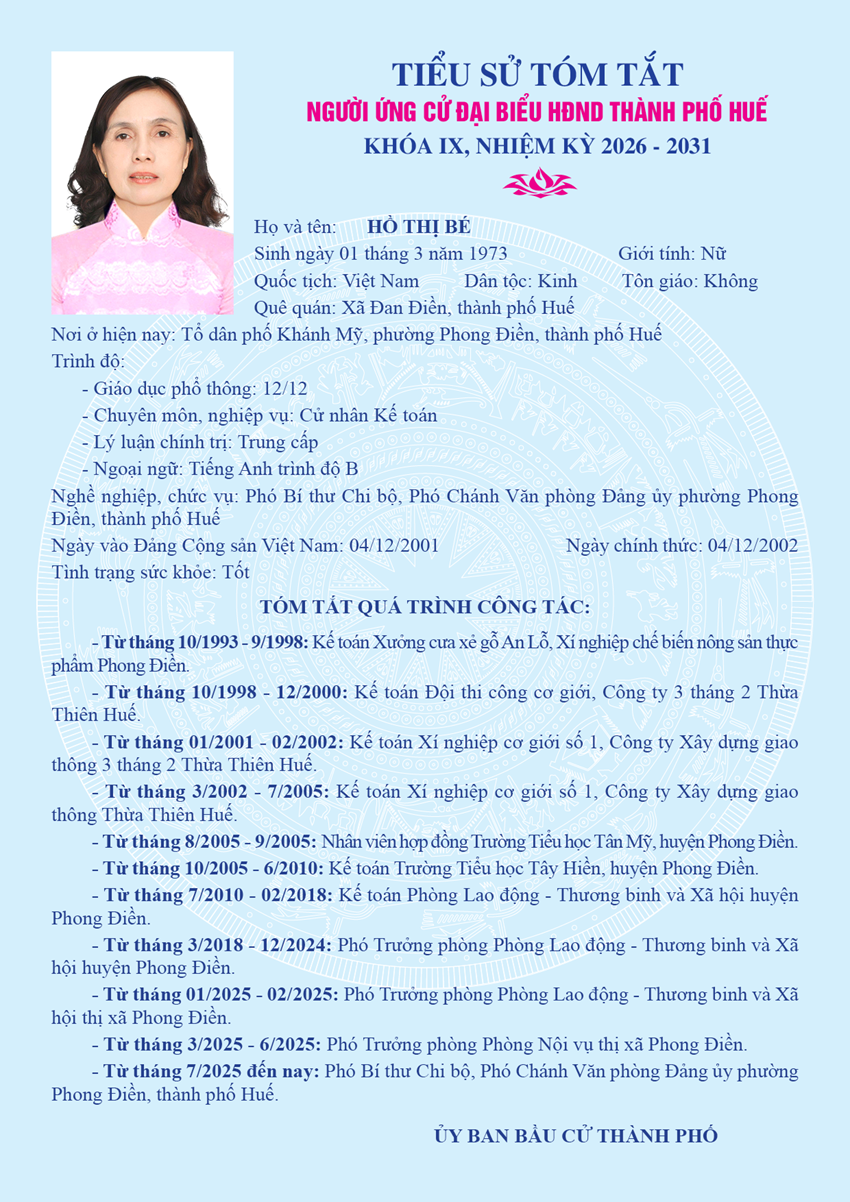 - Tổng số người ứng cử đại biểu Hội đồng nhân dân thành phố trong danh sách này là: 05 người.