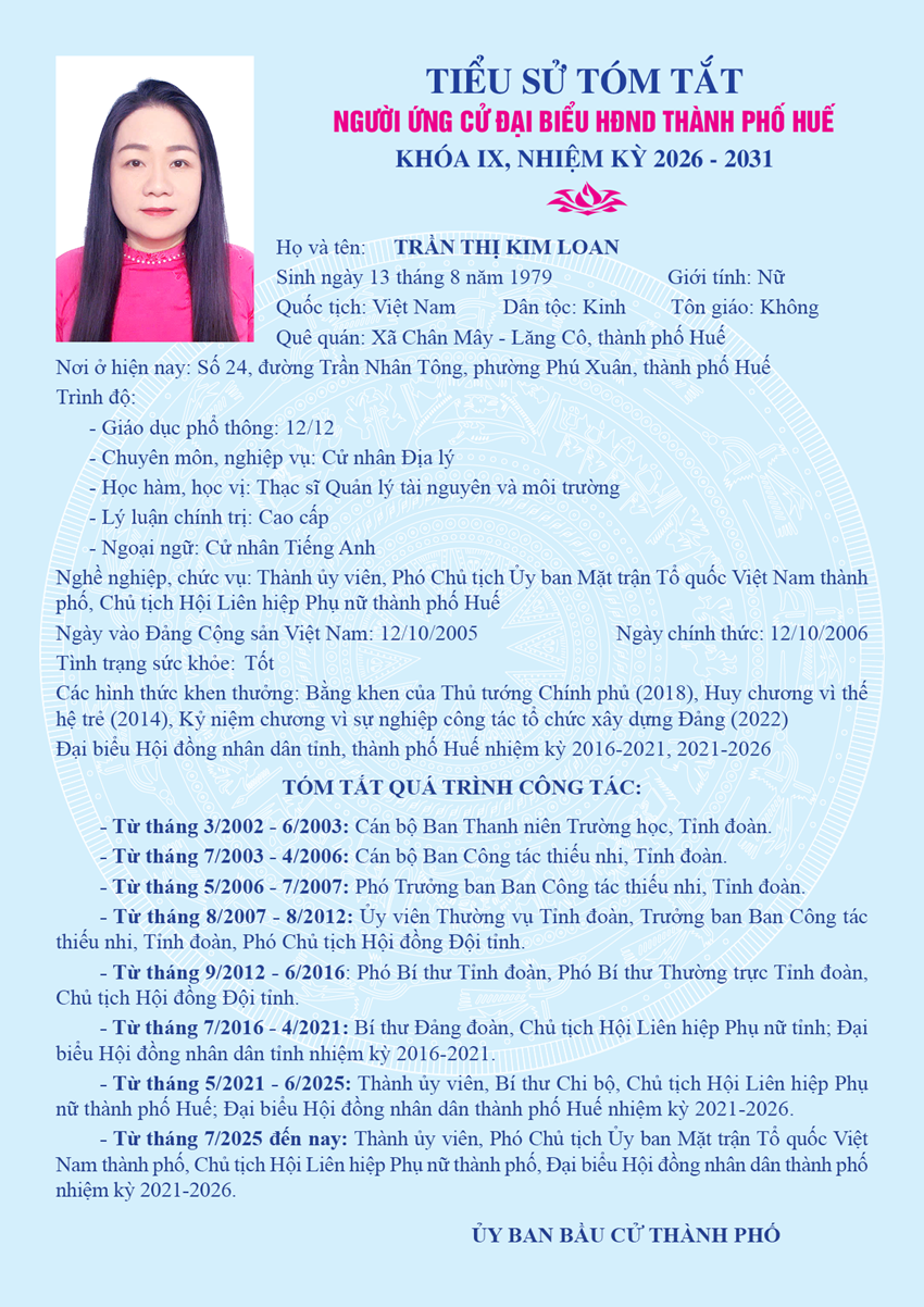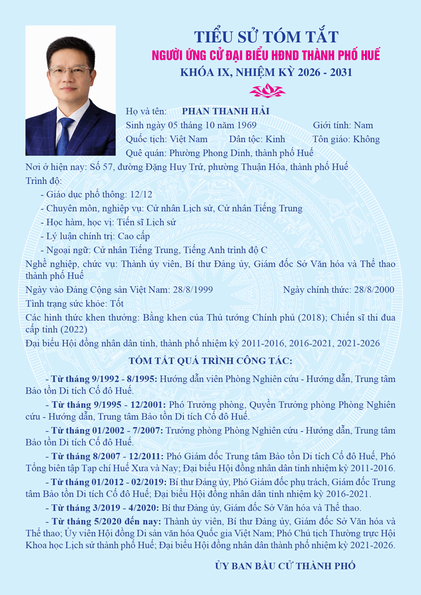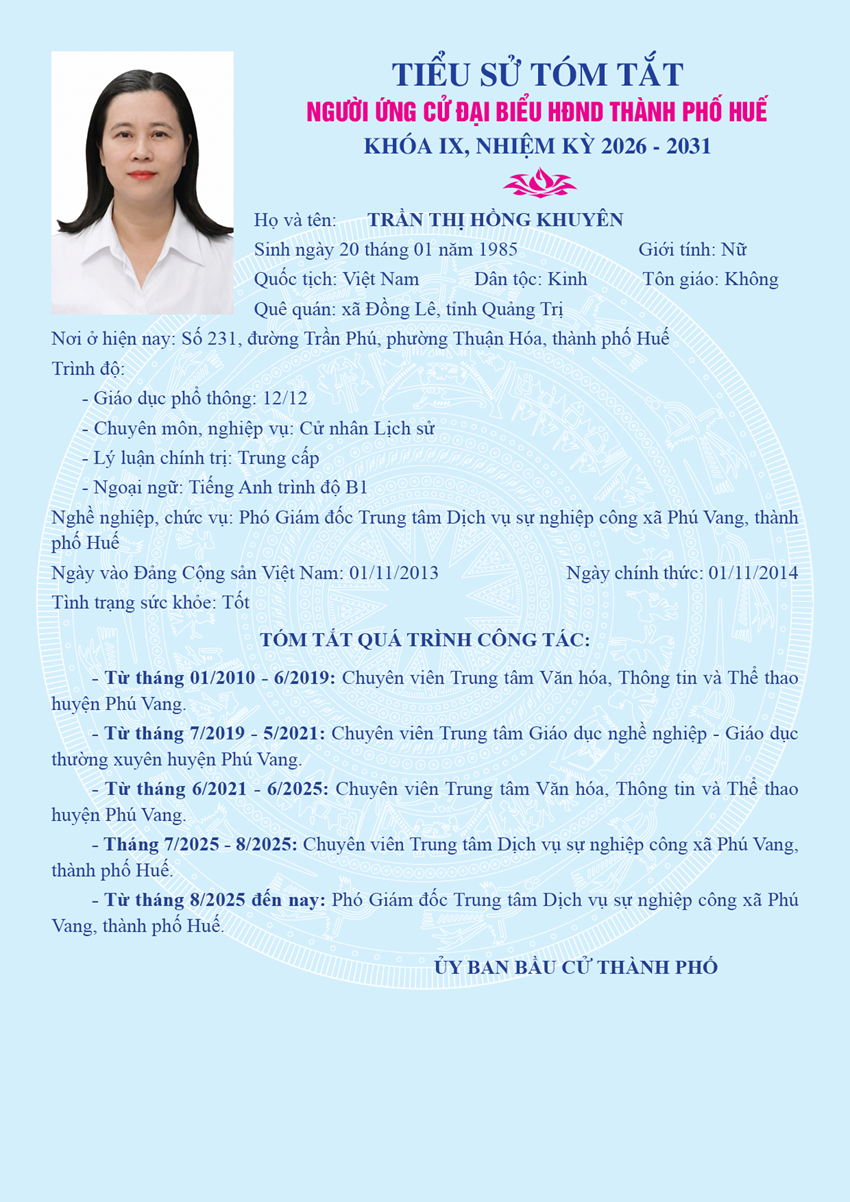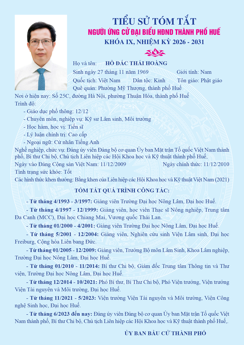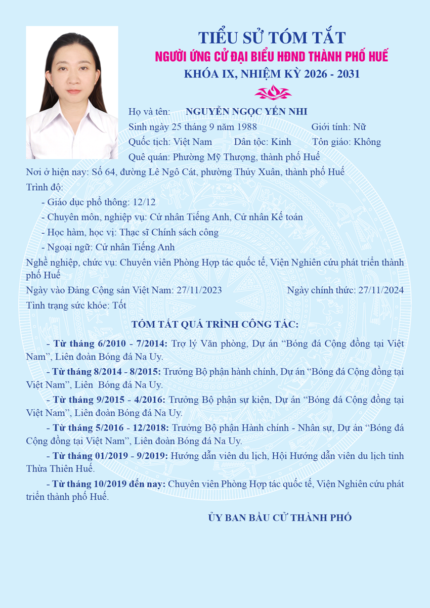 - Tổng số người ứng cử đại biểu Hội đồng nhân dân thành phố trong danh sách này là: 05 người.