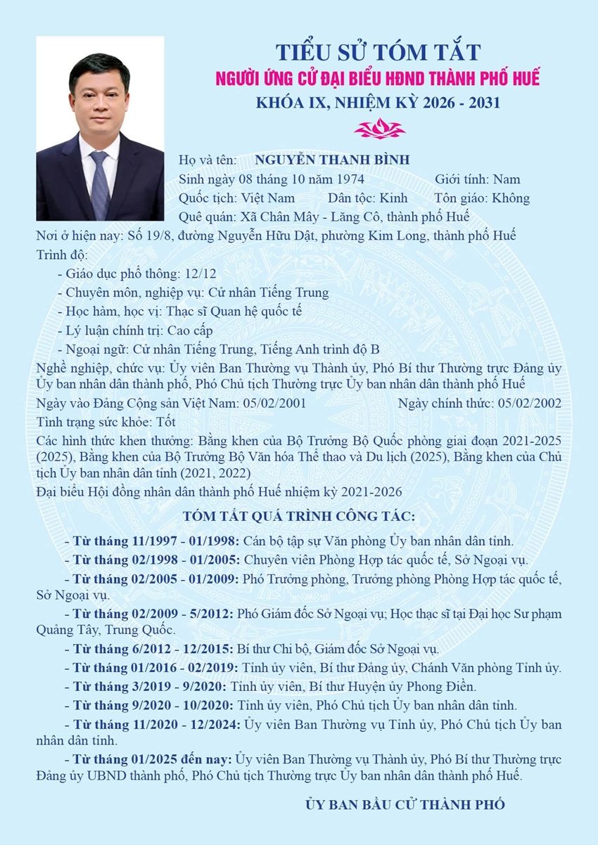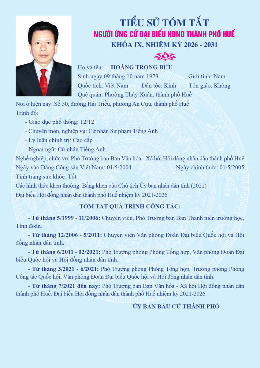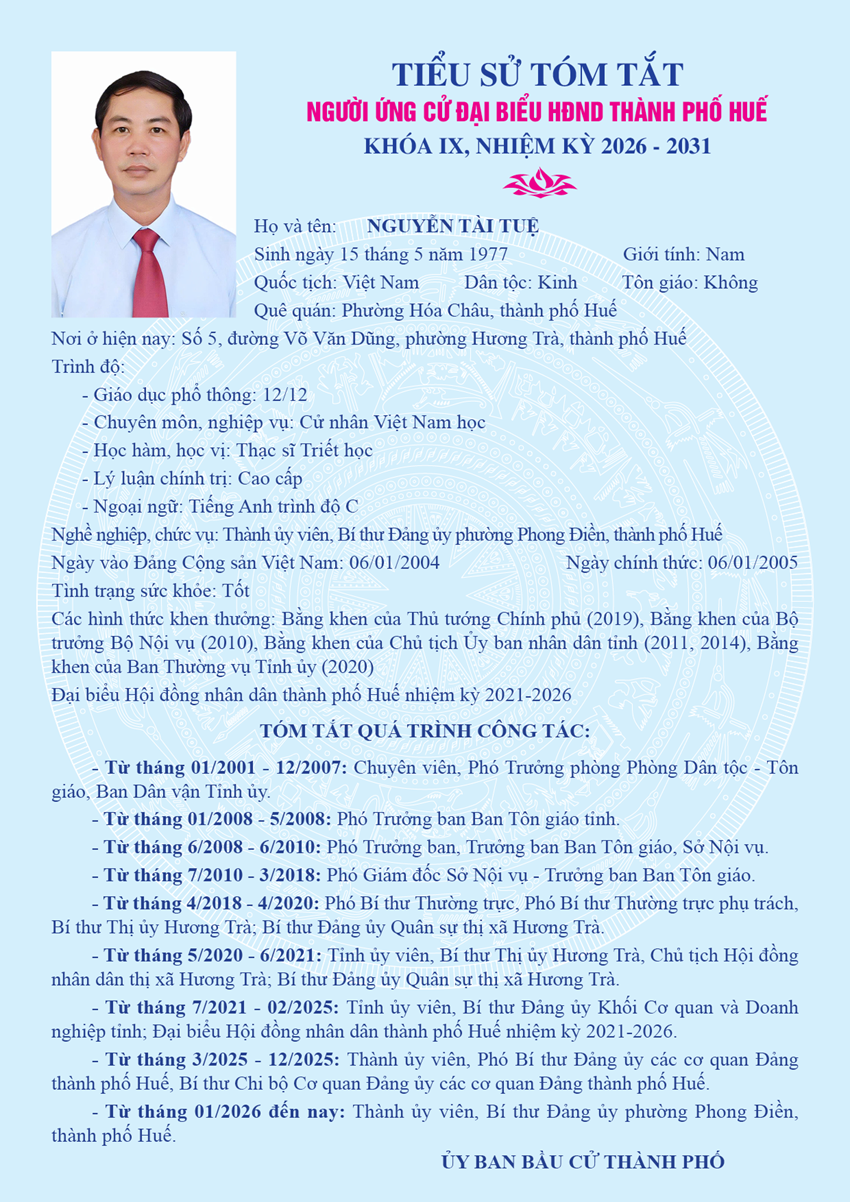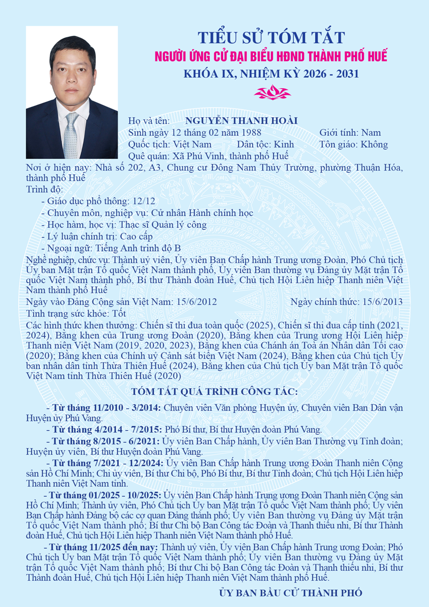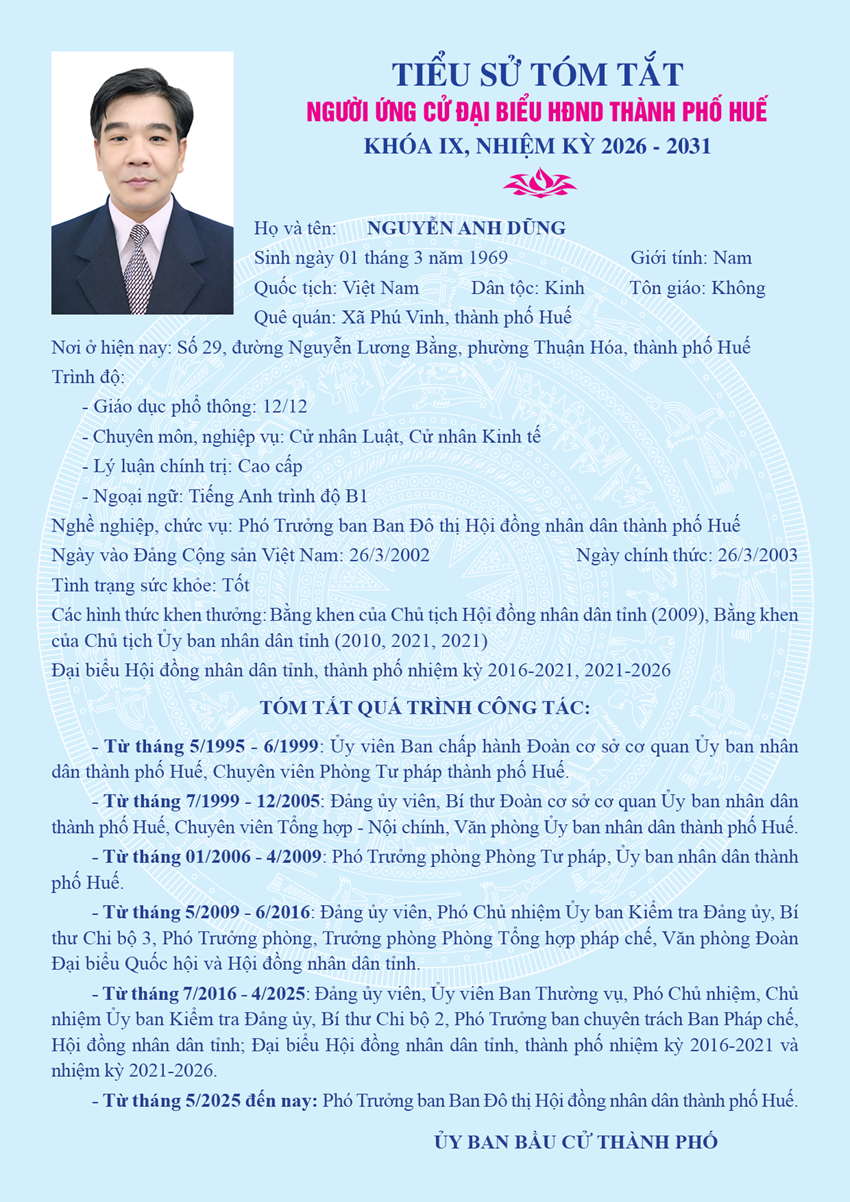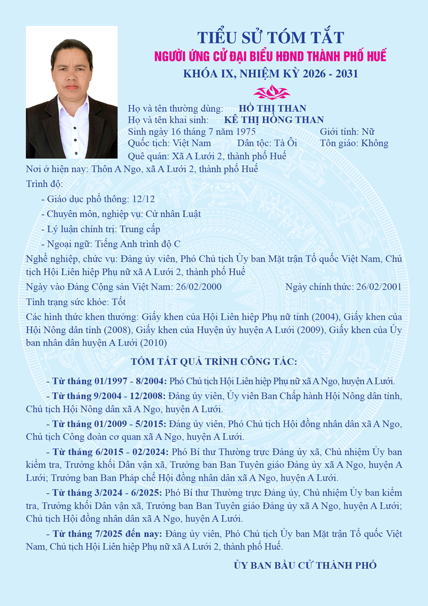 - Tổng số người ứng cử đại biểu Hội đồng nhân dân thành phố trong danh sách này là: 05 người.