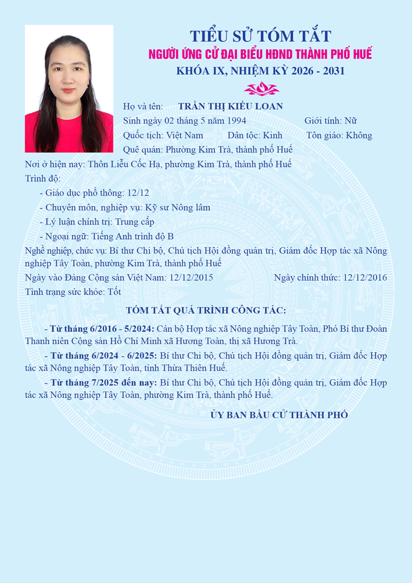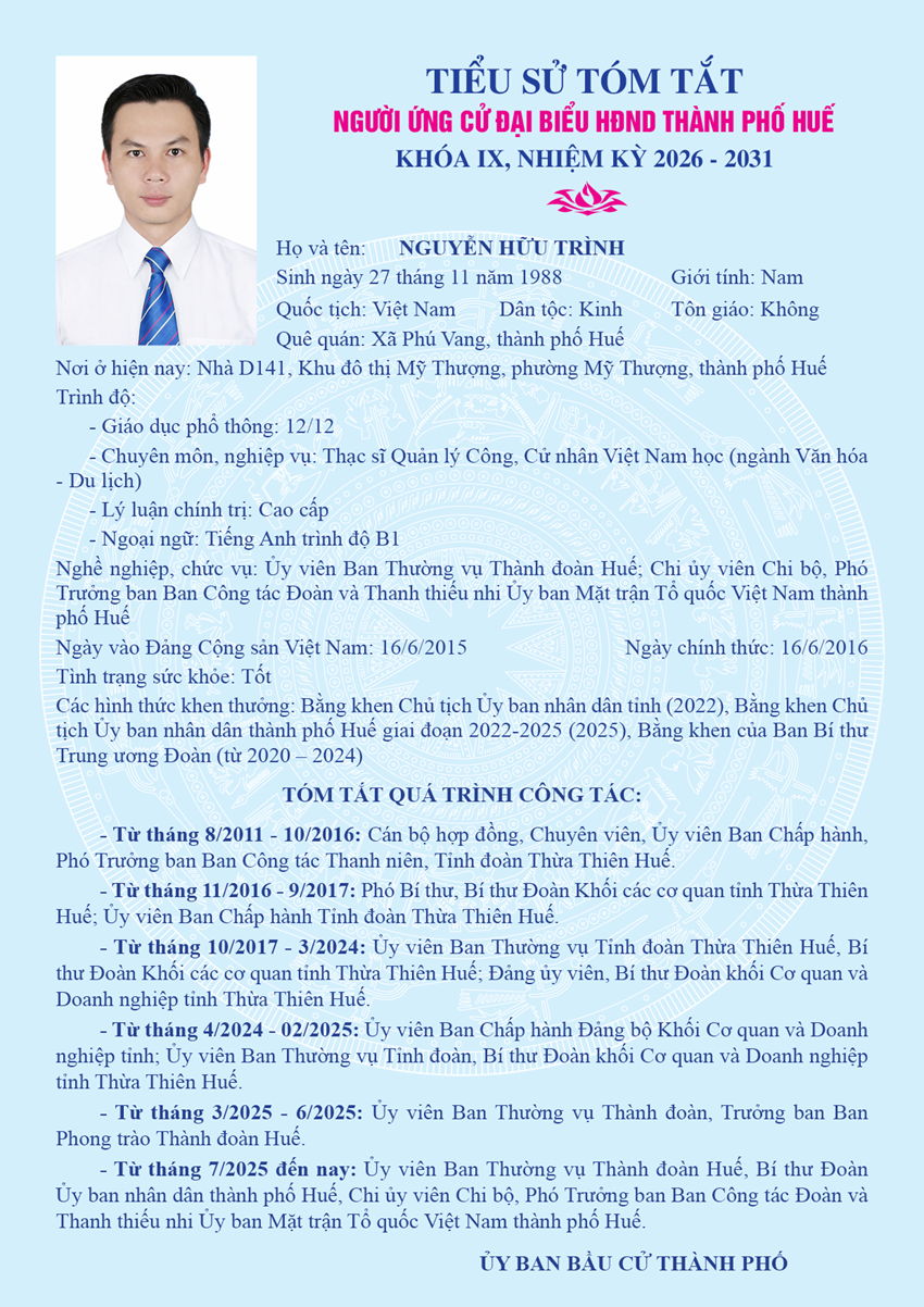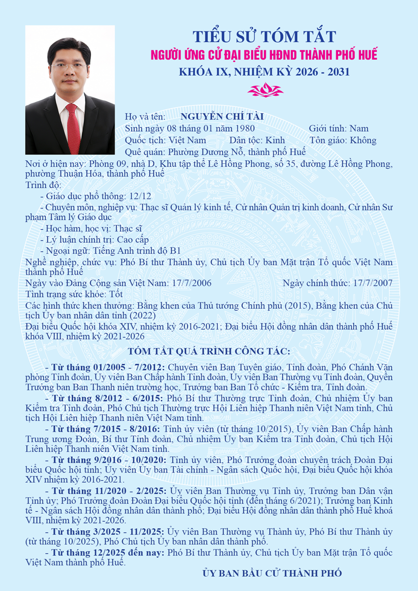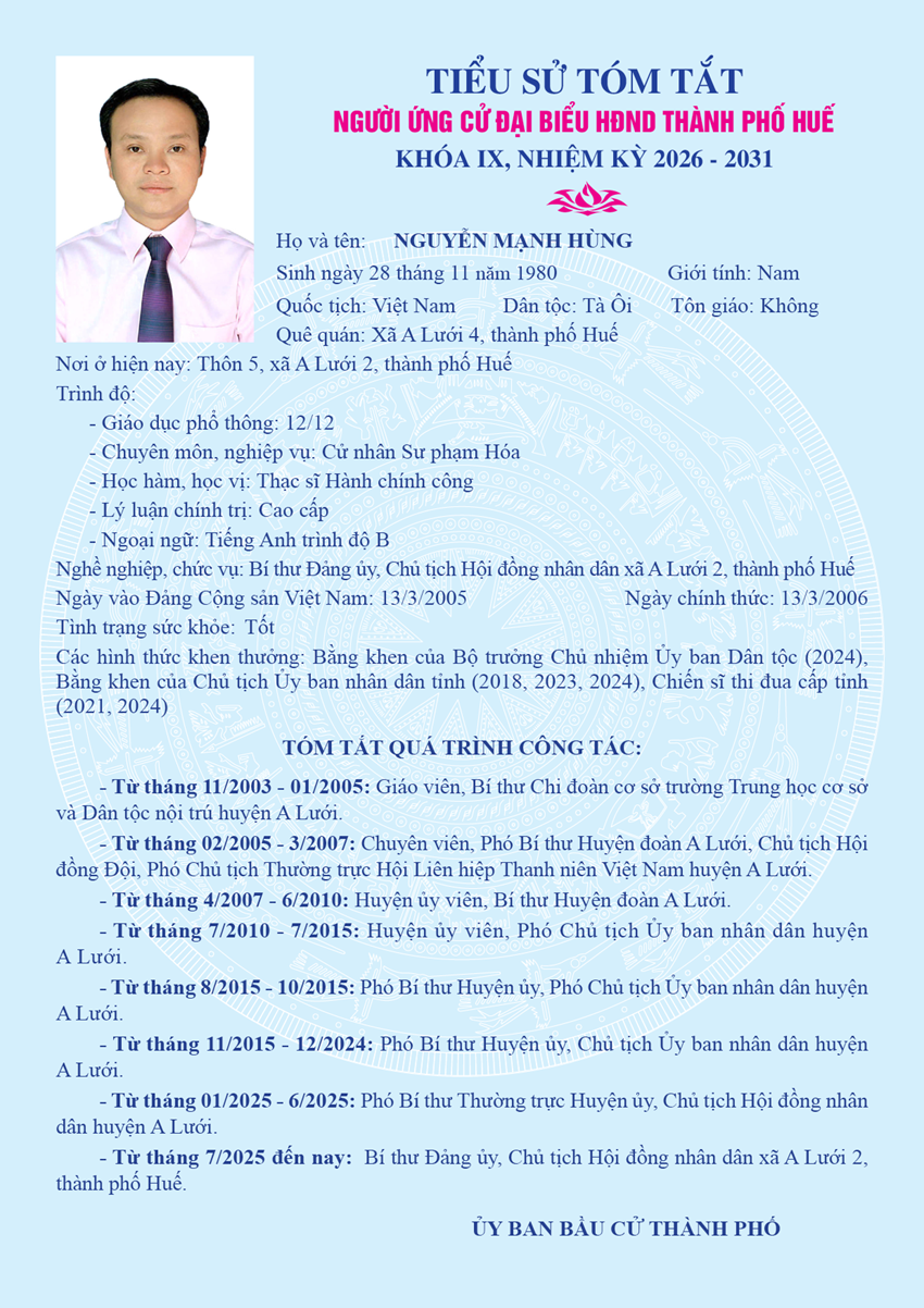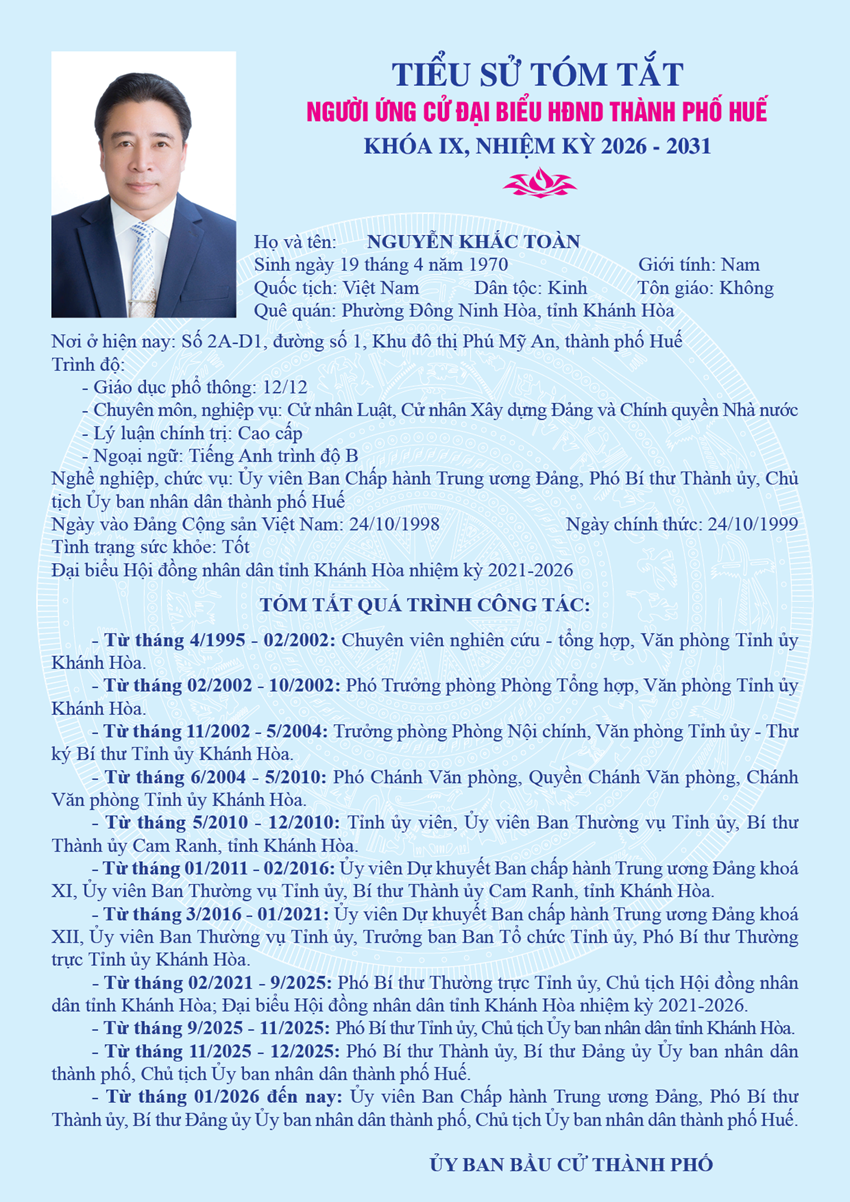 - Tổng số người ứng cử đại biểu Hội đồng nhân dân thành phố trong danh sách này là: 05 người.
