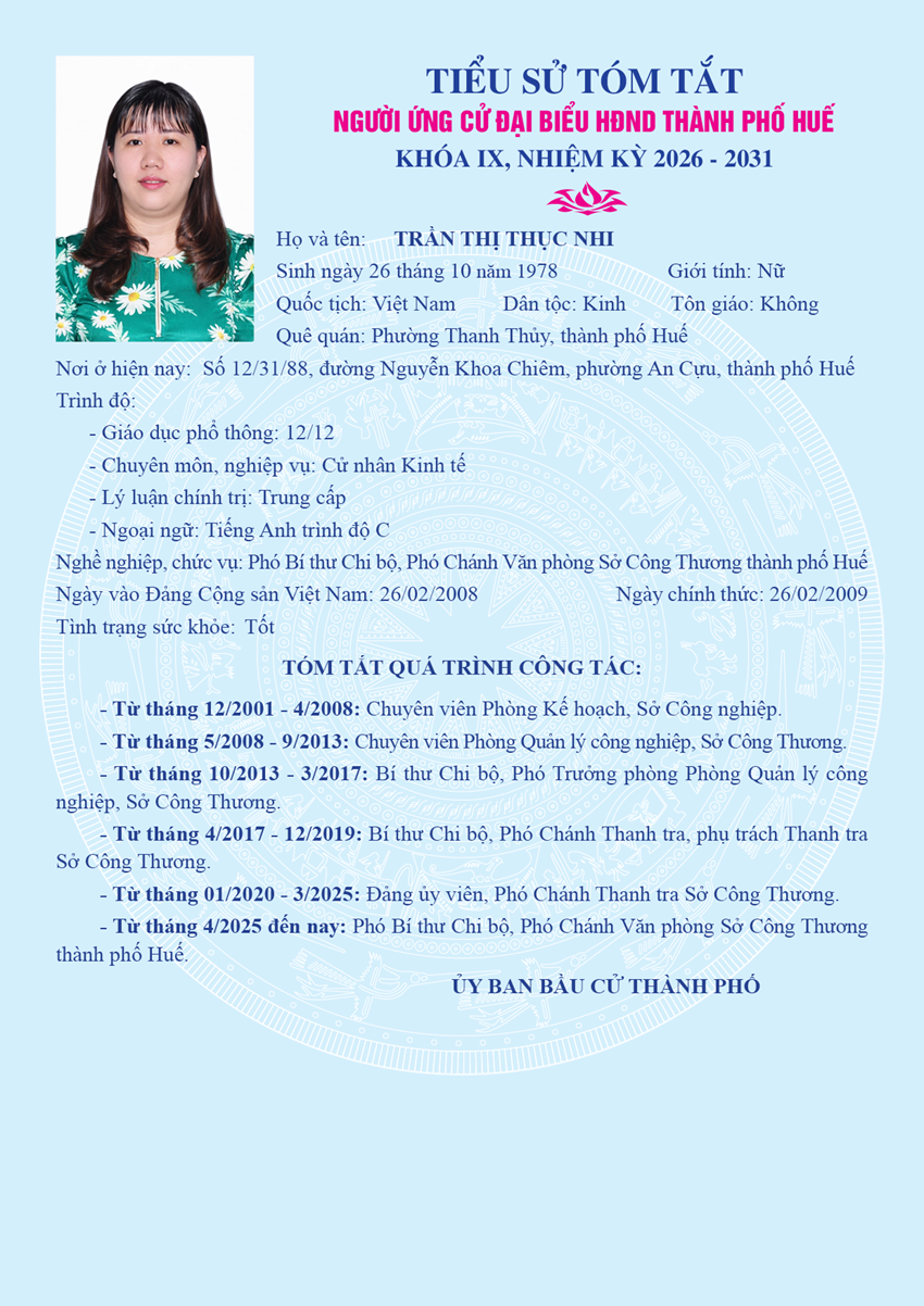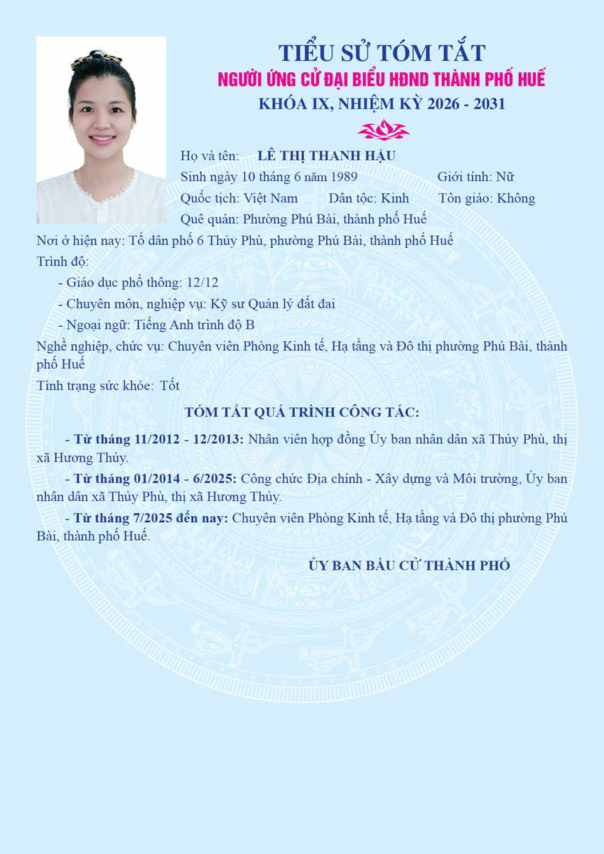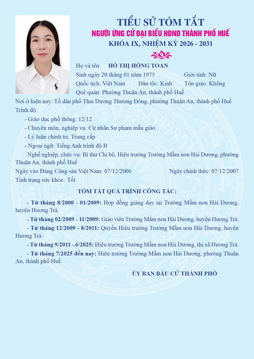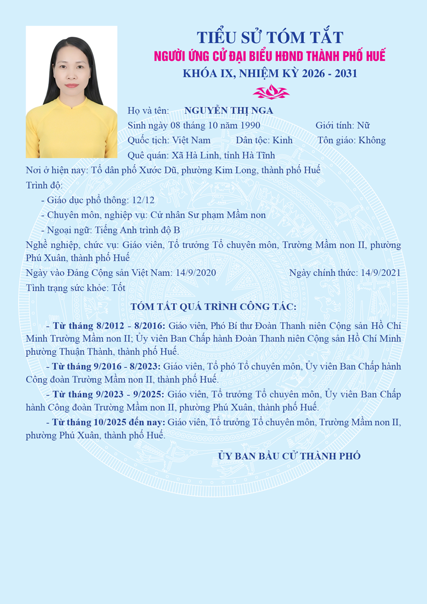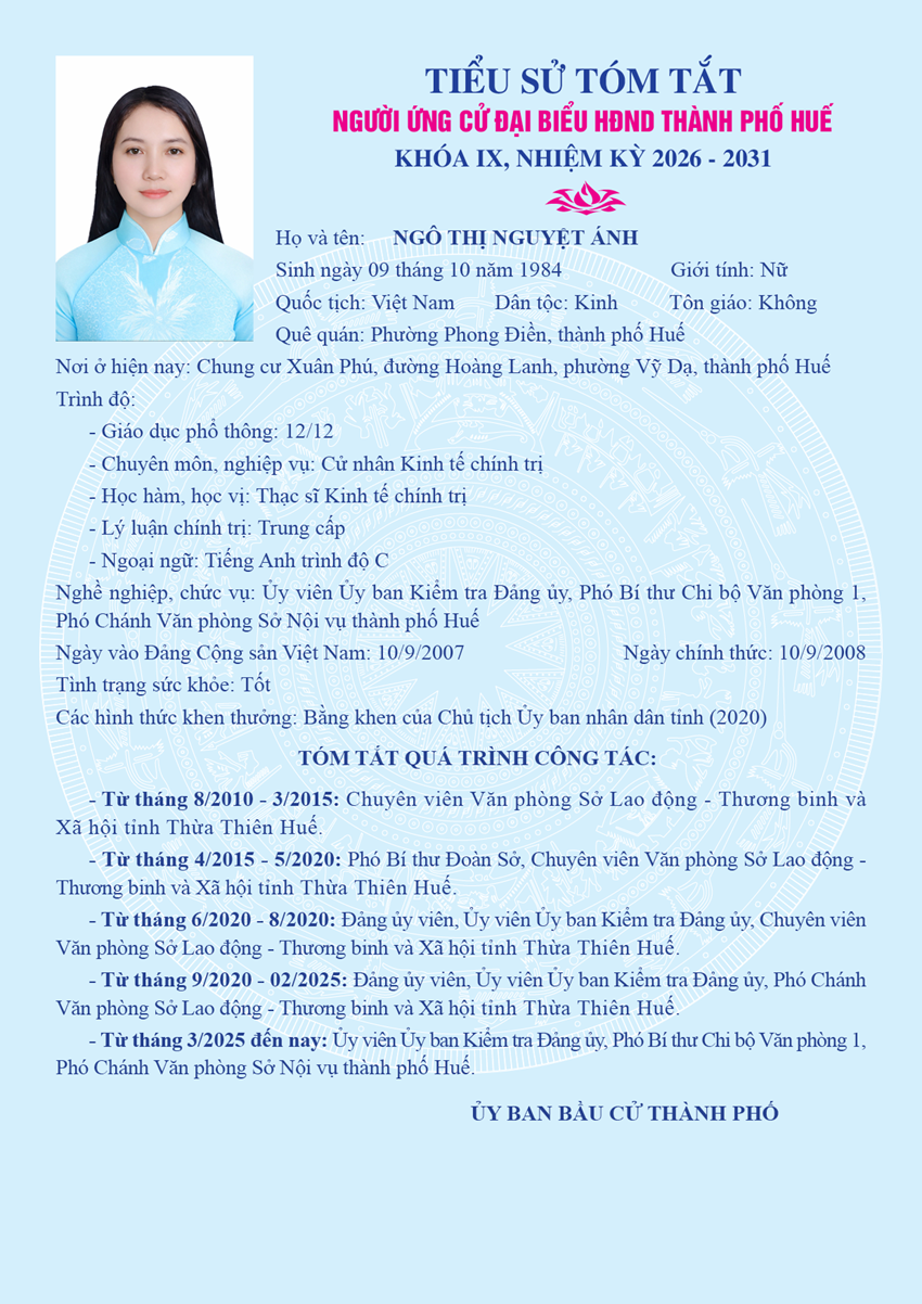 - Tổng số người ứng cử đại biểu Hội đồng nhân dân thành phố trong danh sách này là: 06 người;