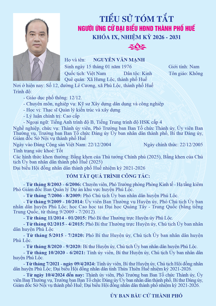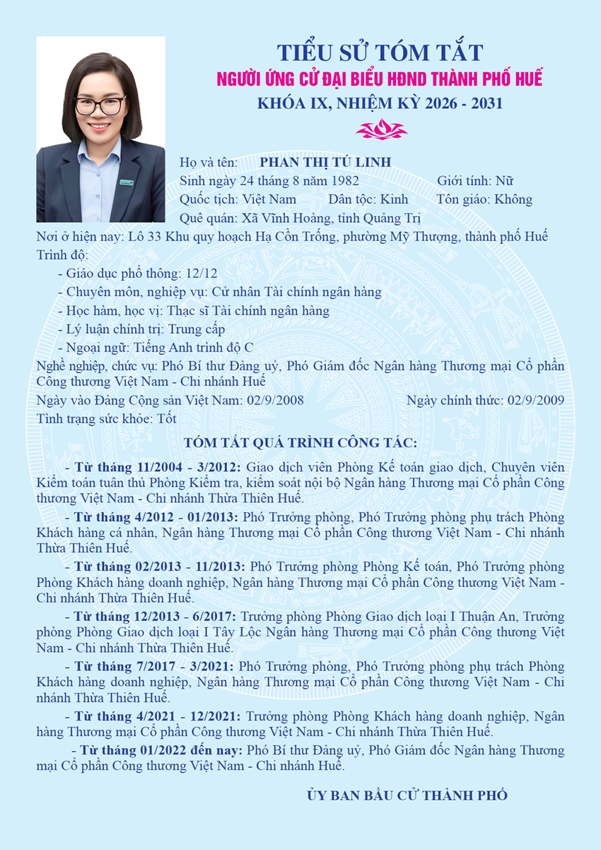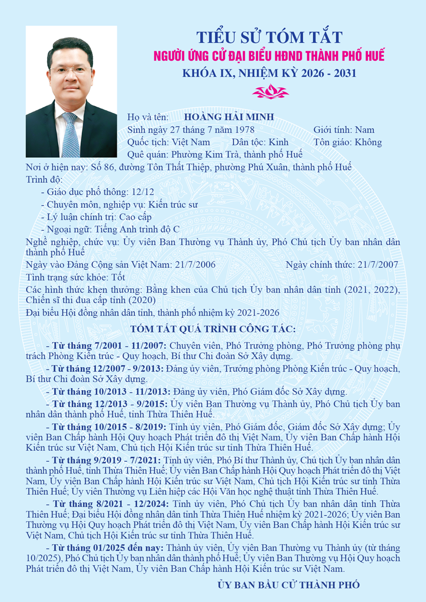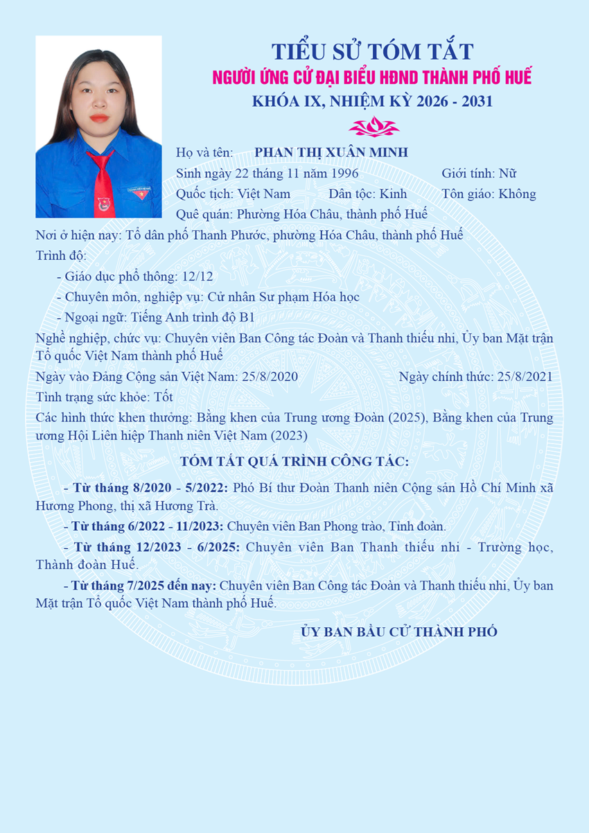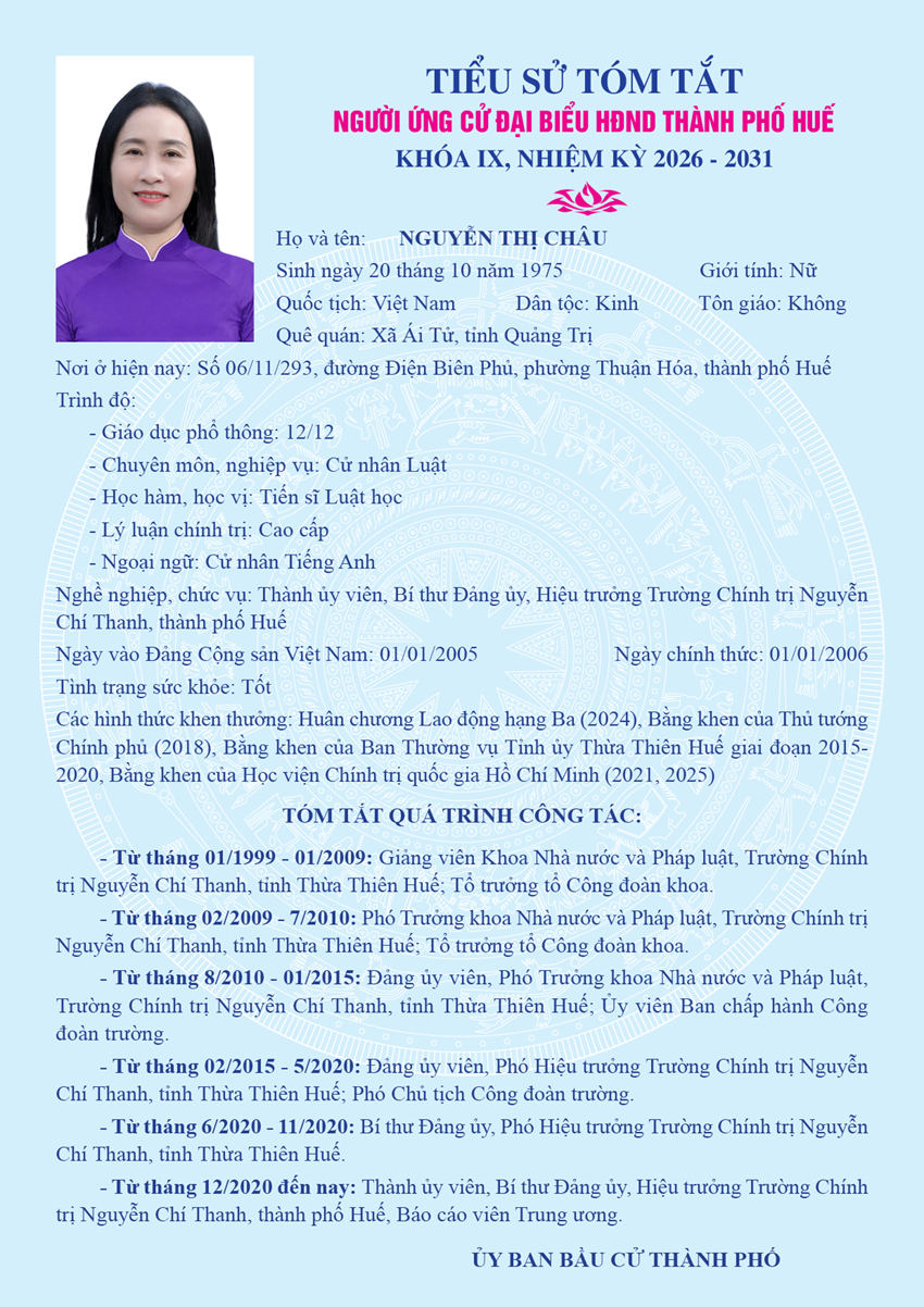 - Tổng số người ứng cử đại biểu Hội đồng nhân dân thành phố trong danh sách này là: 06 người;