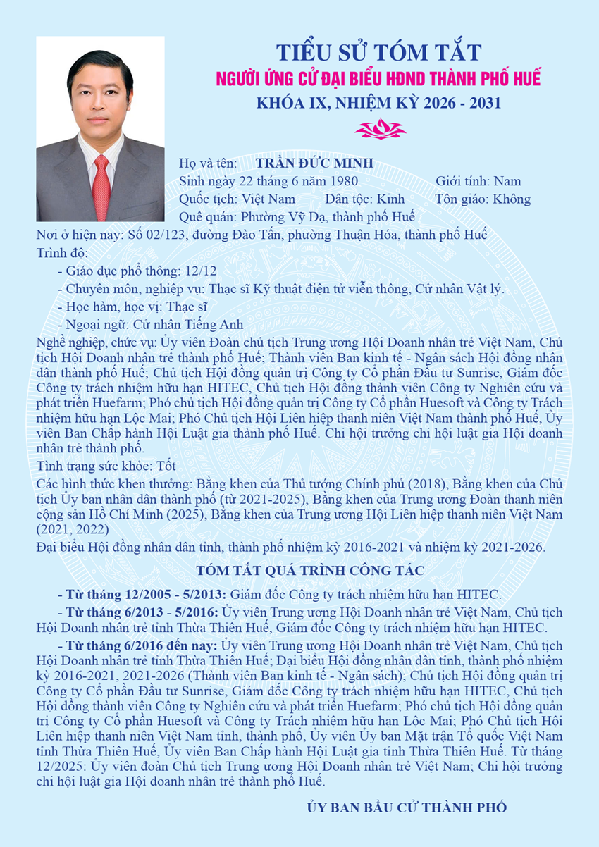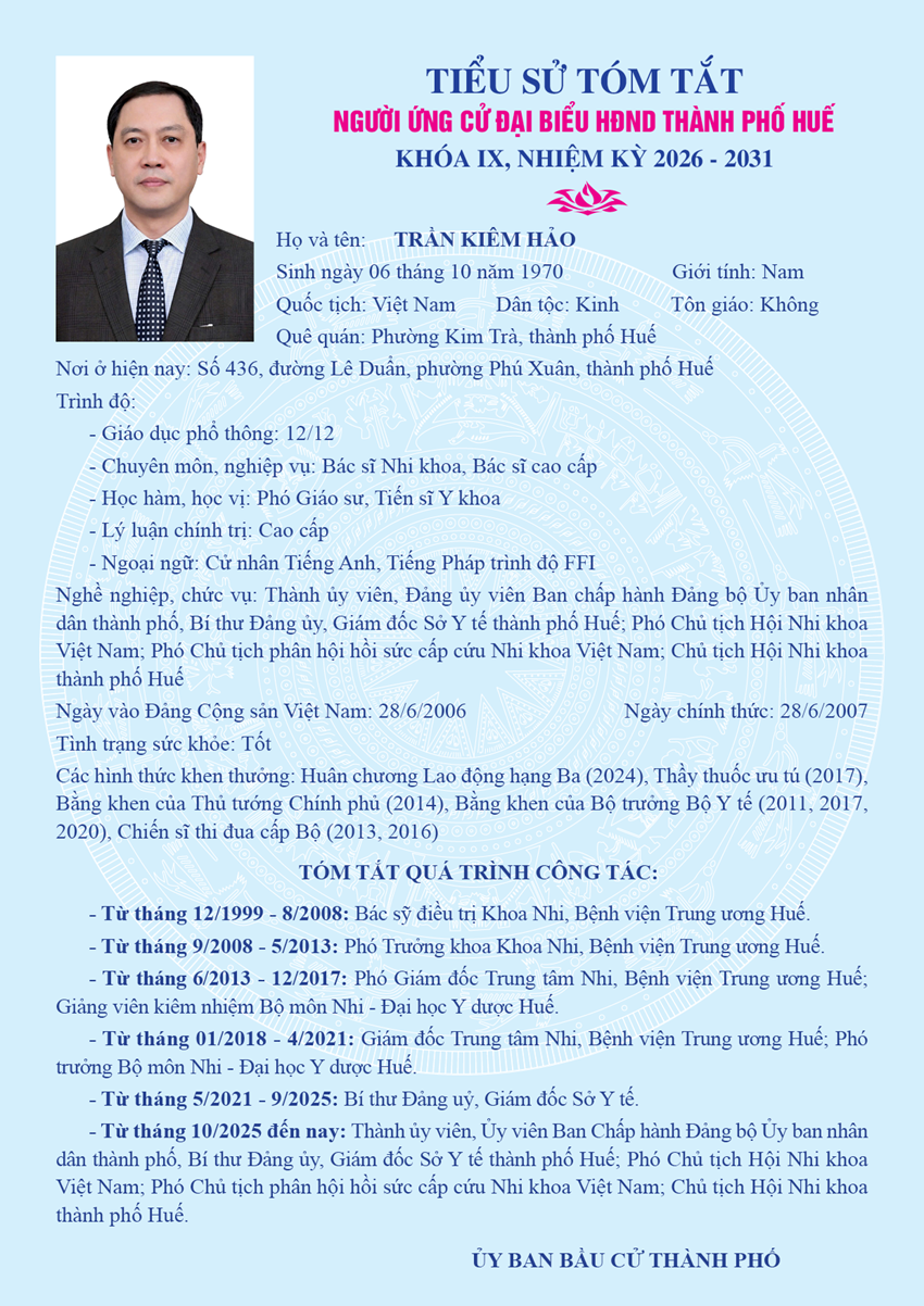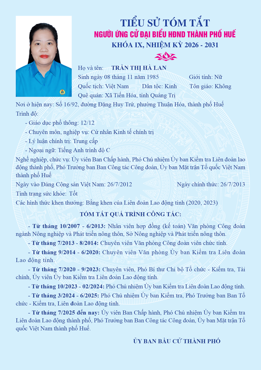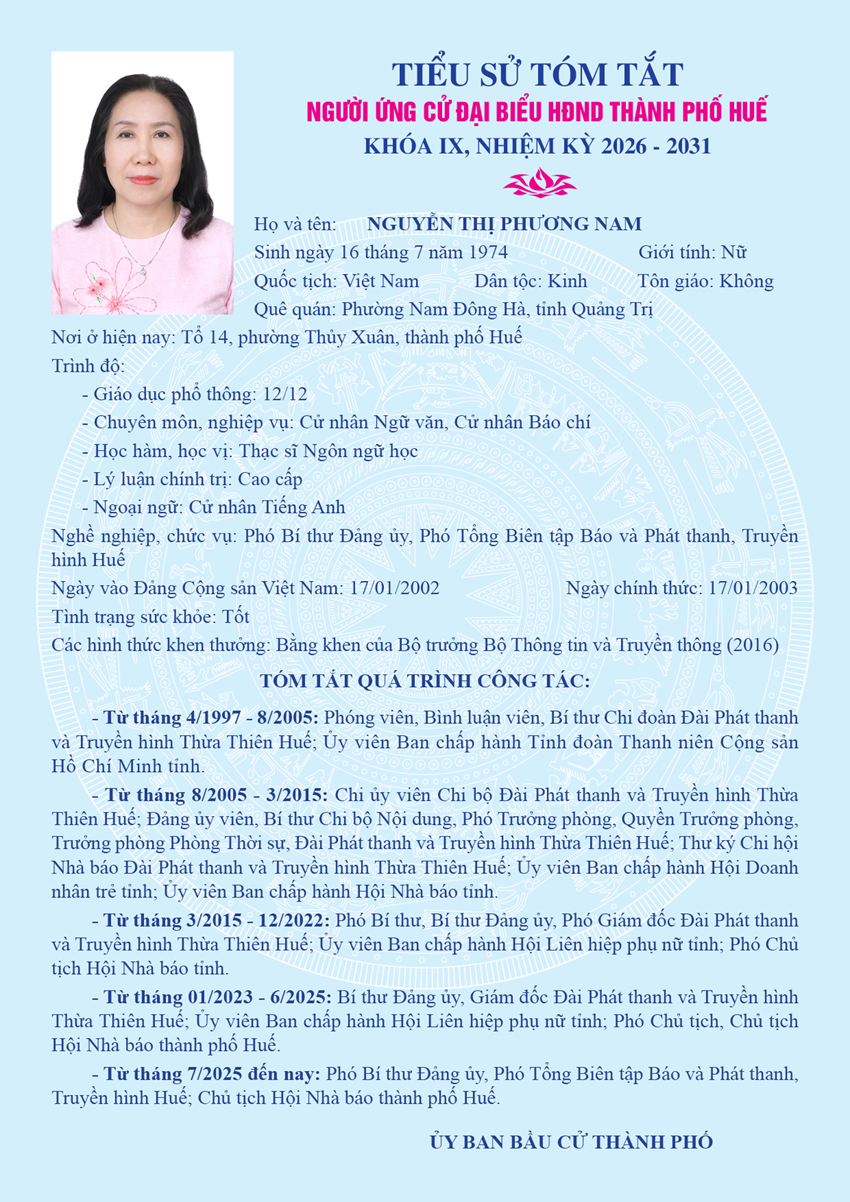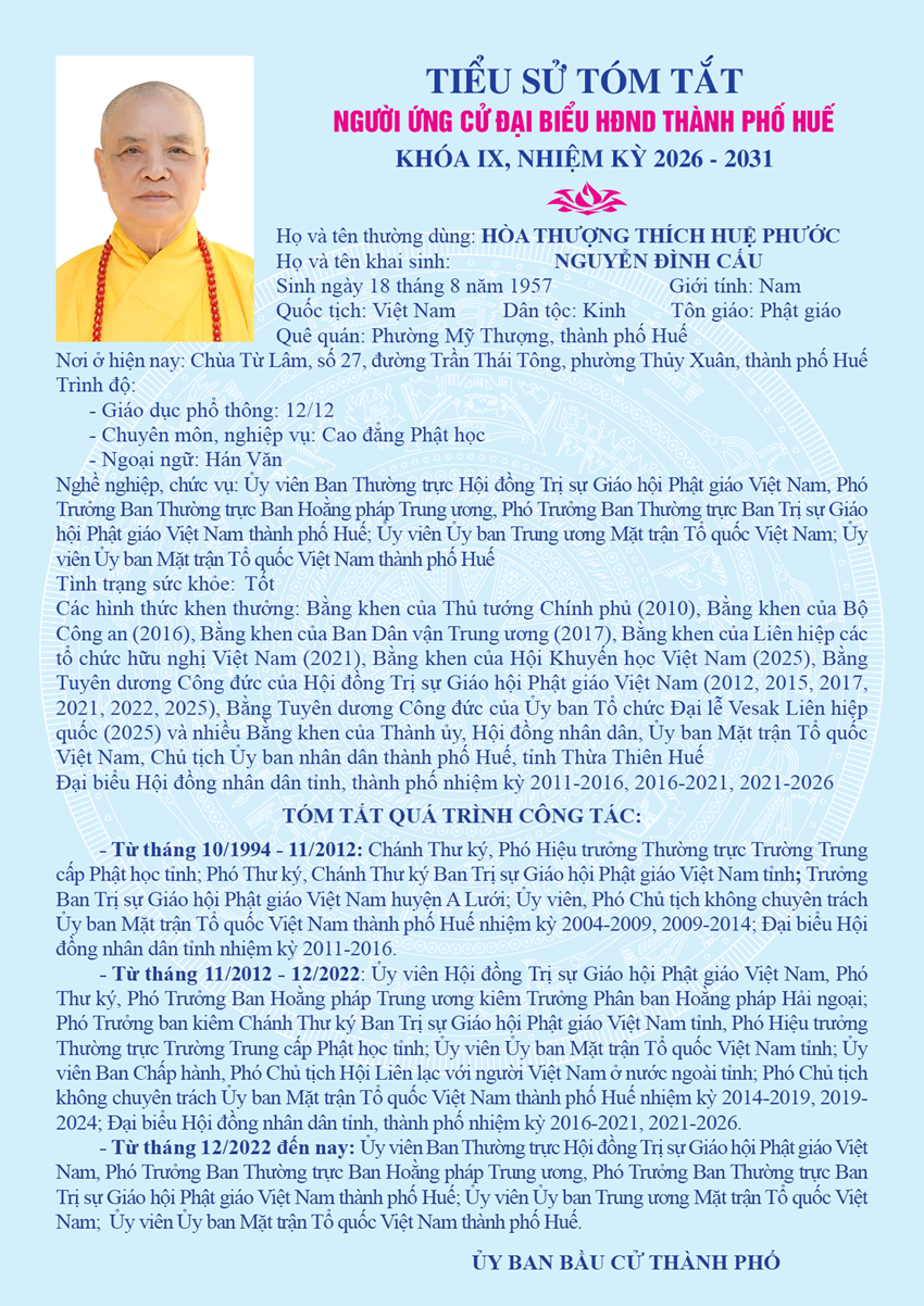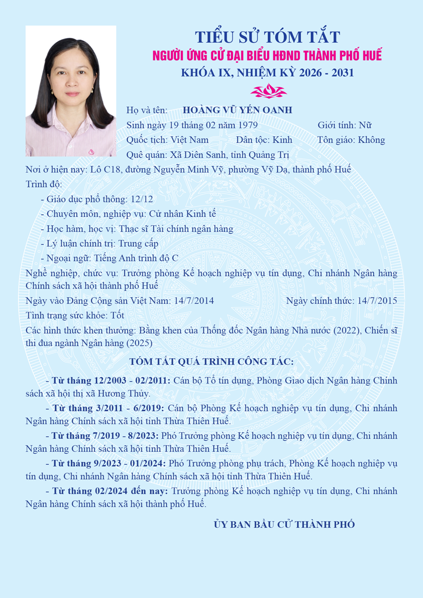 - Tổng số người ứng cử đại biểu Hội đồng nhân dân thành phố trong danh sách này là: 06 người;
